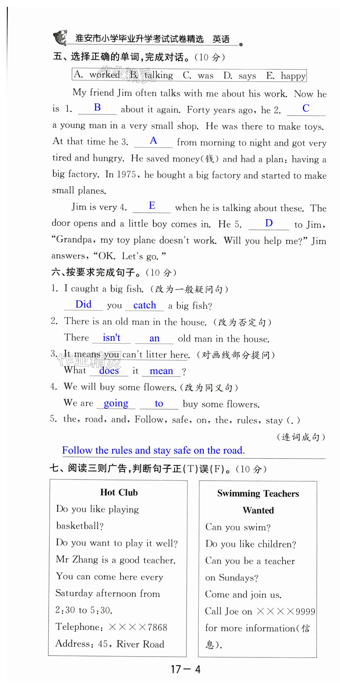 注:目前有些书本章节名称可能整理的还不是很完善,但都是按照顺序排列的,请同学们按照顺序仔细查找。练习册 2024年考必胜小学毕业升学考试试卷精选六年级英语淮安专版 答案主要是用来给同学们做完题方便对答案用的,请勿直接抄袭。