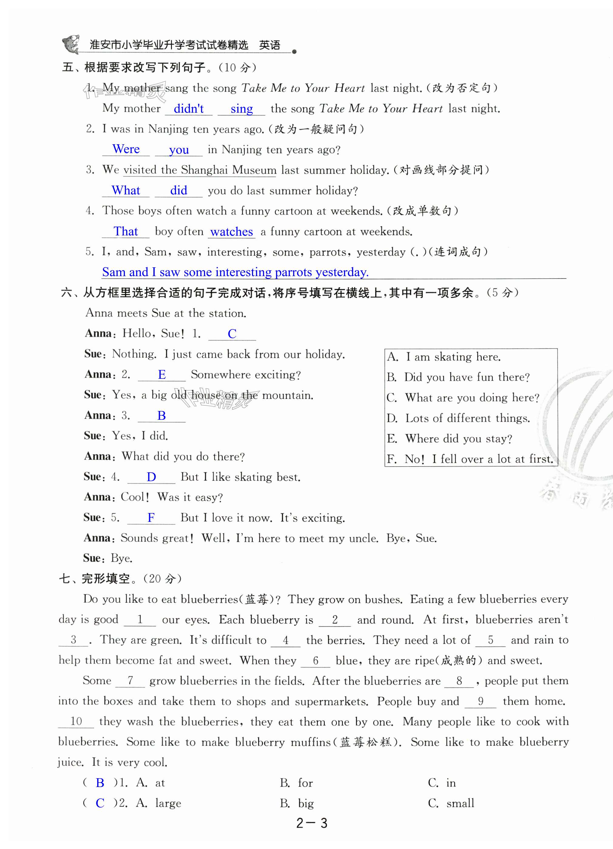 注:目前有些书本章节名称可能整理的还不是很完善,但都是按照顺序排列的,请同学们按照顺序仔细查找。练习册 2024年考必胜小学毕业升学考试试卷精选六年级英语淮安专版 答案主要是用来给同学们做完题方便对答案用的,请勿直接抄袭。