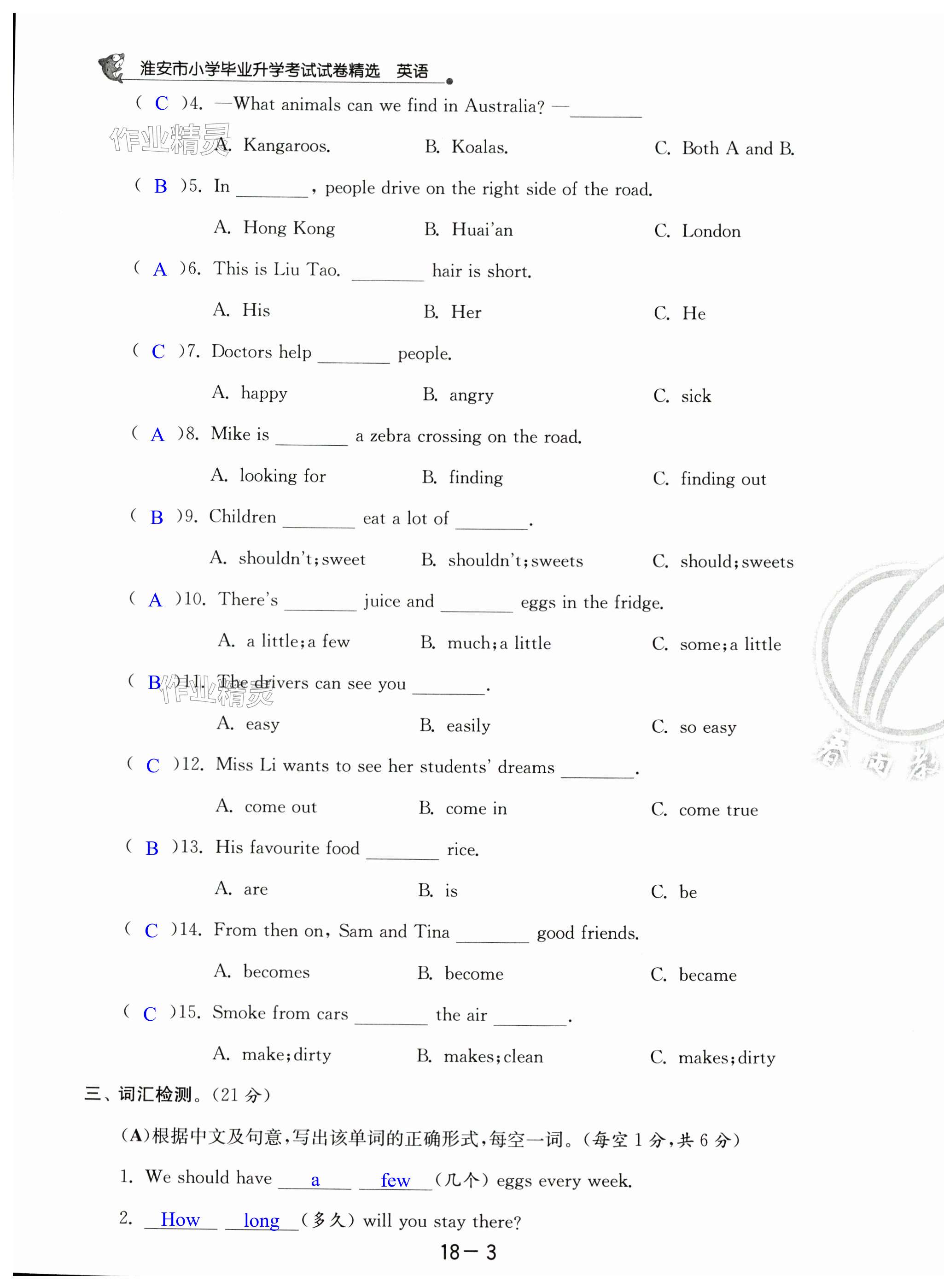 注:目前有些书本章节名称可能整理的还不是很完善,但都是按照顺序排列的,请同学们按照顺序仔细查找。练习册 2024年考必胜小学毕业升学考试试卷精选六年级英语淮安专版 答案主要是用来给同学们做完题方便对答案用的,请勿直接抄袭。