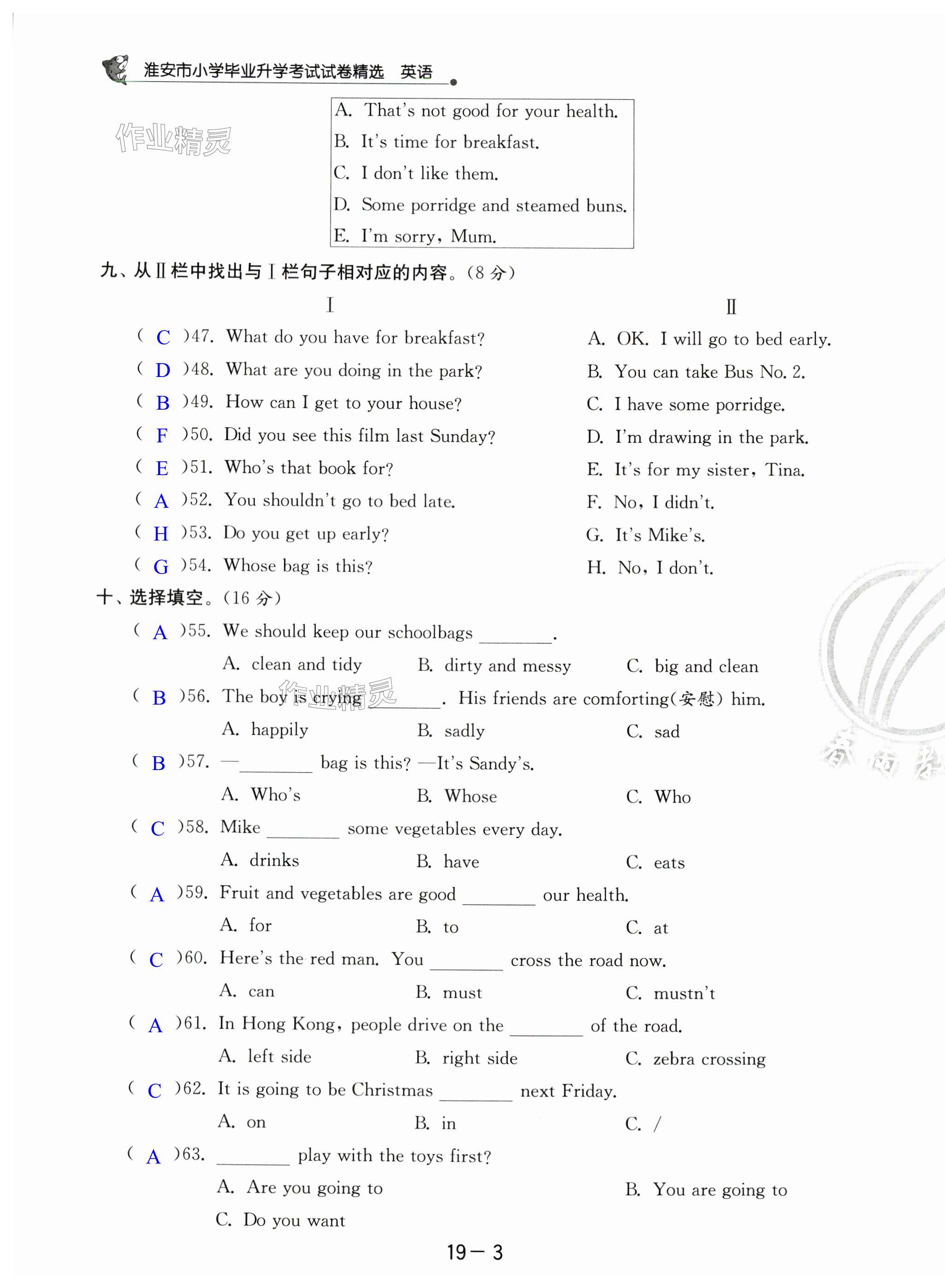 注:目前有些书本章节名称可能整理的还不是很完善,但都是按照顺序排列的,请同学们按照顺序仔细查找。练习册 2024年考必胜小学毕业升学考试试卷精选六年级英语淮安专版 答案主要是用来给同学们做完题方便对答案用的,请勿直接抄袭。