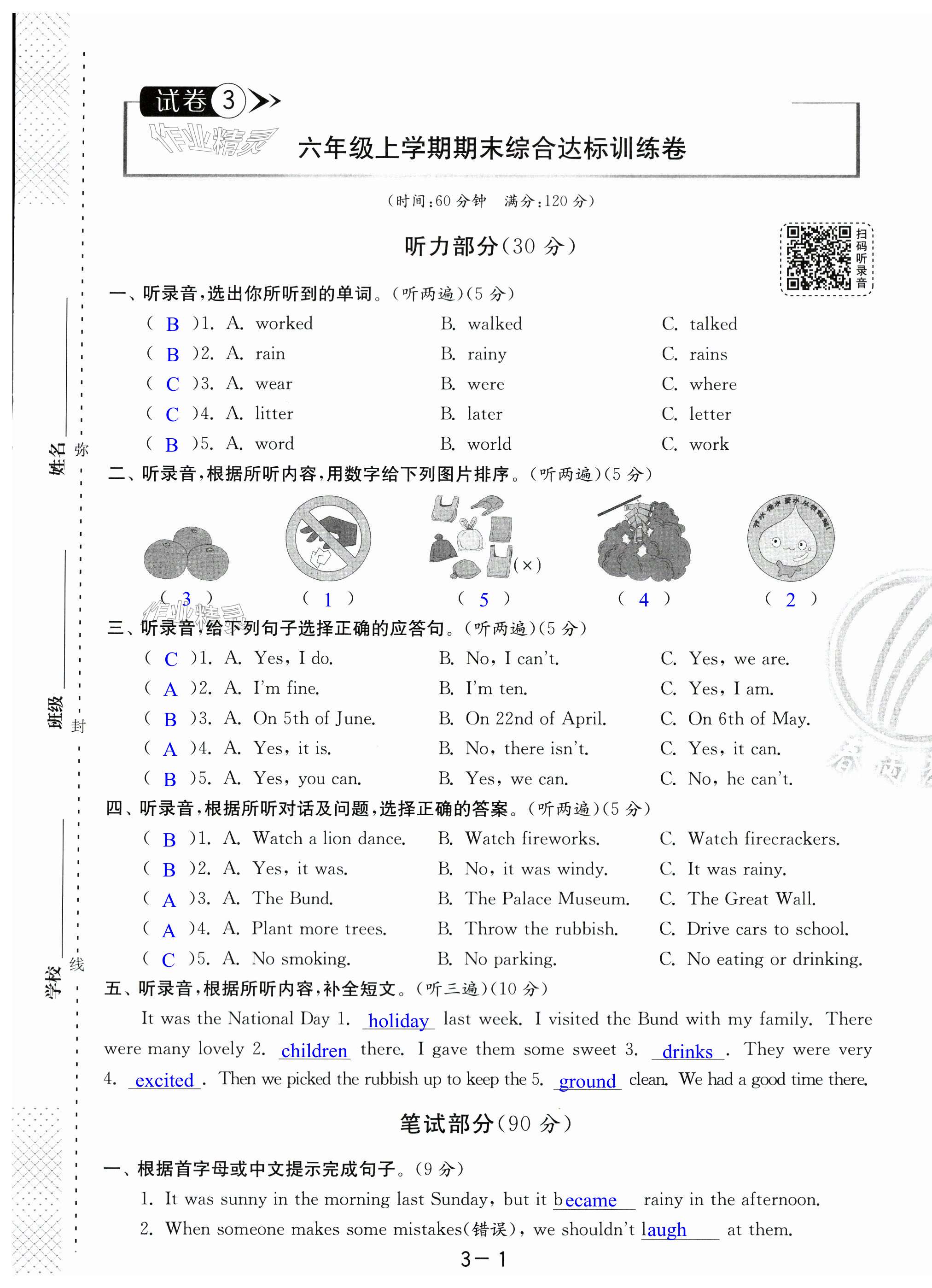 注:目前有些书本章节名称可能整理的还不是很完善,但都是按照顺序排列的,请同学们按照顺序仔细查找。练习册 2024年考必胜小学毕业升学考试试卷精选六年级英语淮安专版 答案主要是用来给同学们做完题方便对答案用的,请勿直接抄袭。