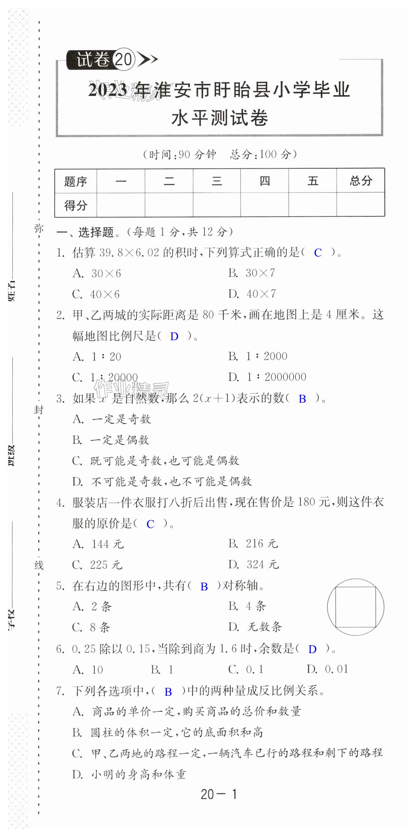 注:目前有些书本章节名称可能整理的还不是很完善,但都是按照顺序排列的,请同学们按照顺序仔细查找。练习册 2024年考必胜小学毕业升学考试试卷精选六年级数学淮安专版 答案主要是用来给同学们做完题方便对答案用的,请勿直接抄袭。