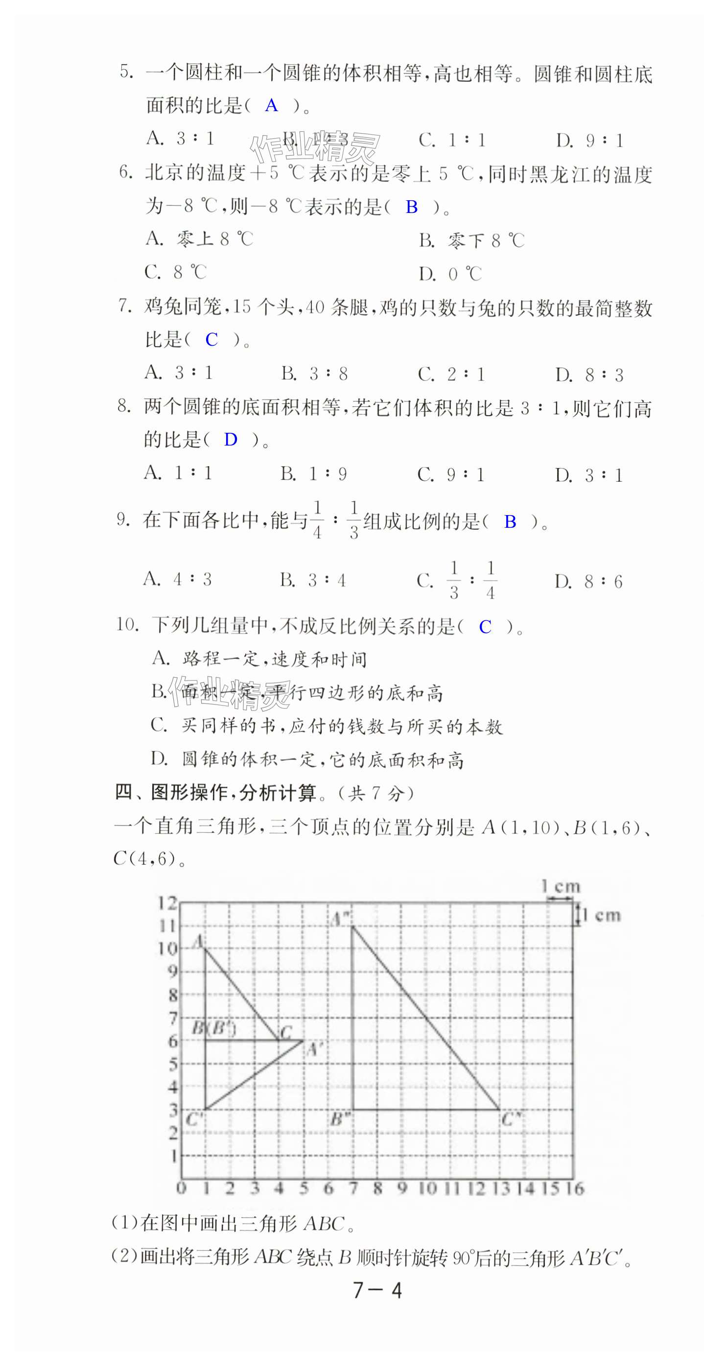注:目前有些书本章节名称可能整理的还不是很完善,但都是按照顺序排列的,请同学们按照顺序仔细查找。练习册 2024年考必胜小学毕业升学考试试卷精选六年级数学淮安专版 答案主要是用来给同学们做完题方便对答案用的,请勿直接抄袭。