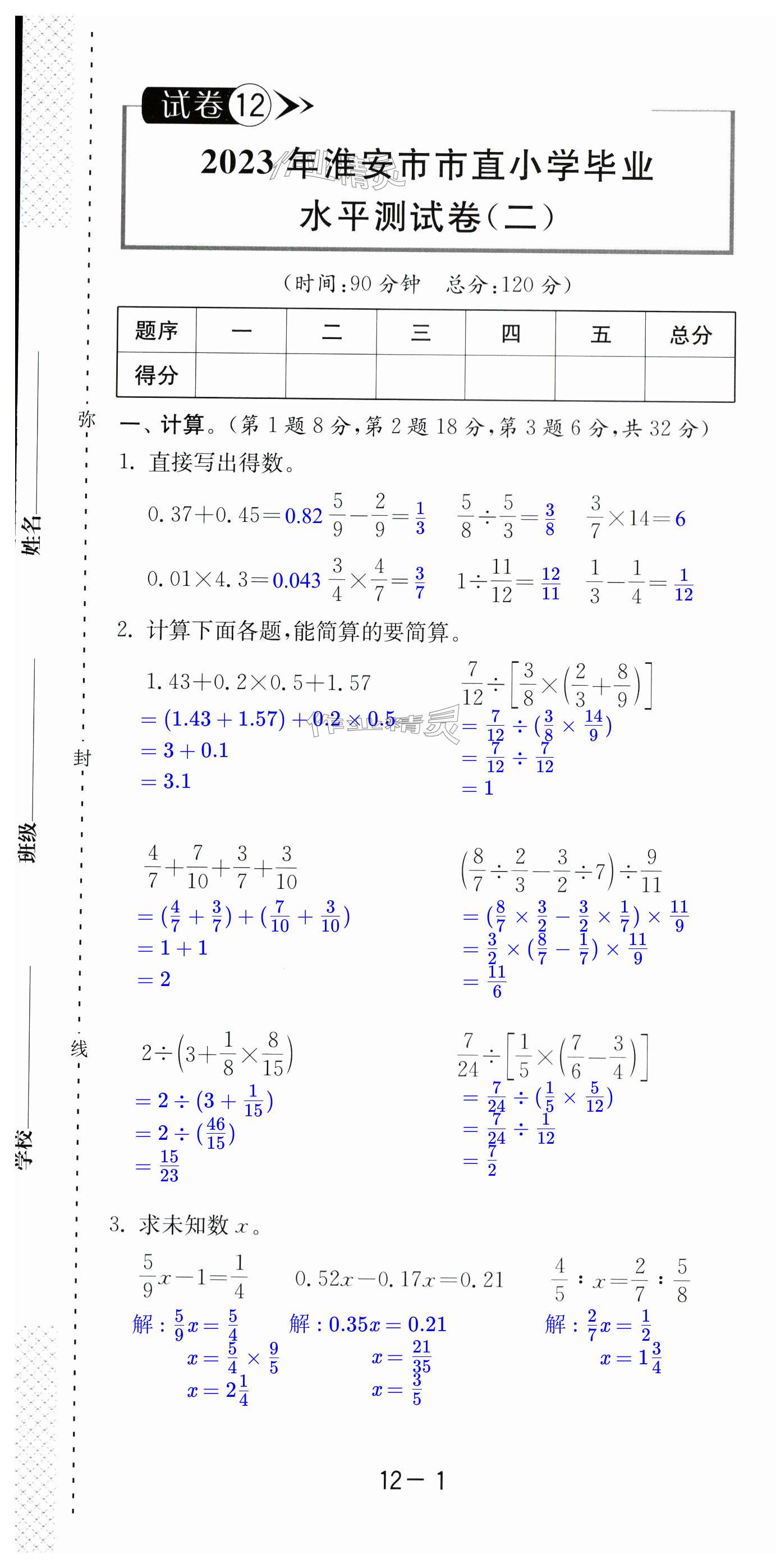 注:目前有些书本章节名称可能整理的还不是很完善,但都是按照顺序排列的,请同学们按照顺序仔细查找。练习册 2024年考必胜小学毕业升学考试试卷精选六年级数学淮安专版 答案主要是用来给同学们做完题方便对答案用的,请勿直接抄袭。