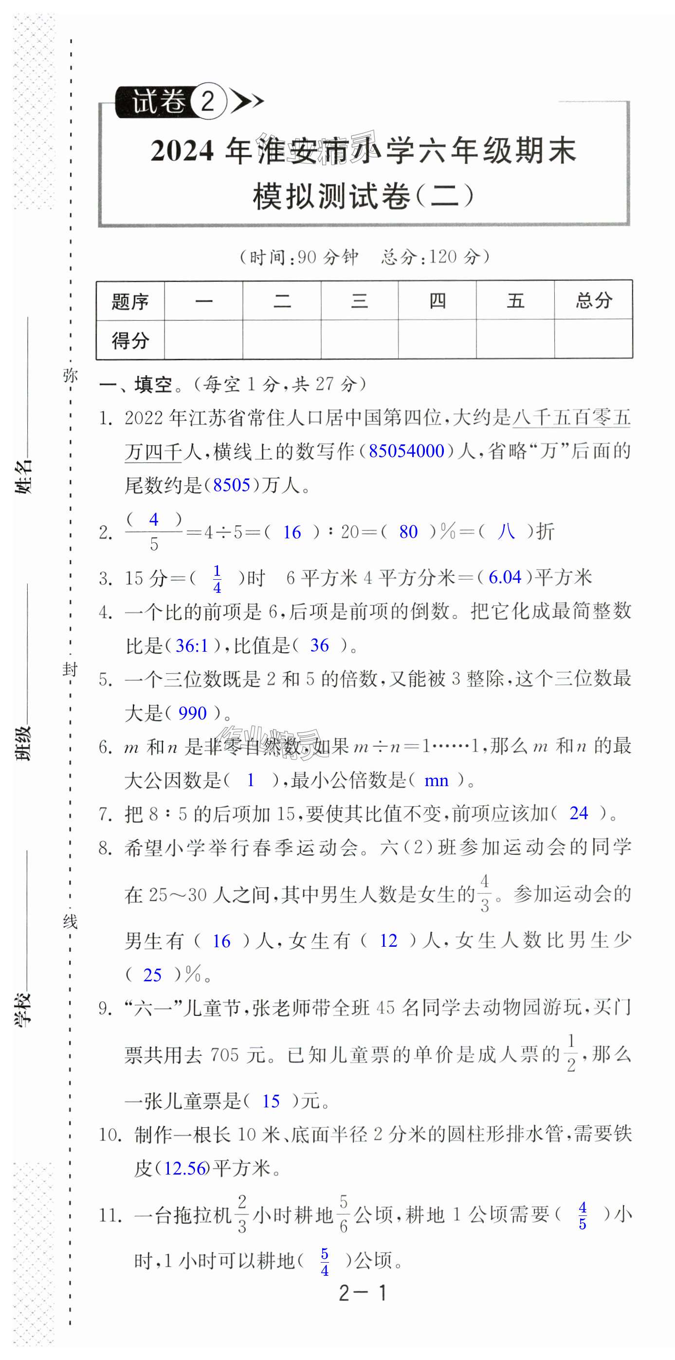 注:目前有些书本章节名称可能整理的还不是很完善,但都是按照顺序排列的,请同学们按照顺序仔细查找。练习册 2024年考必胜小学毕业升学考试试卷精选六年级数学淮安专版 答案主要是用来给同学们做完题方便对答案用的,请勿直接抄袭。