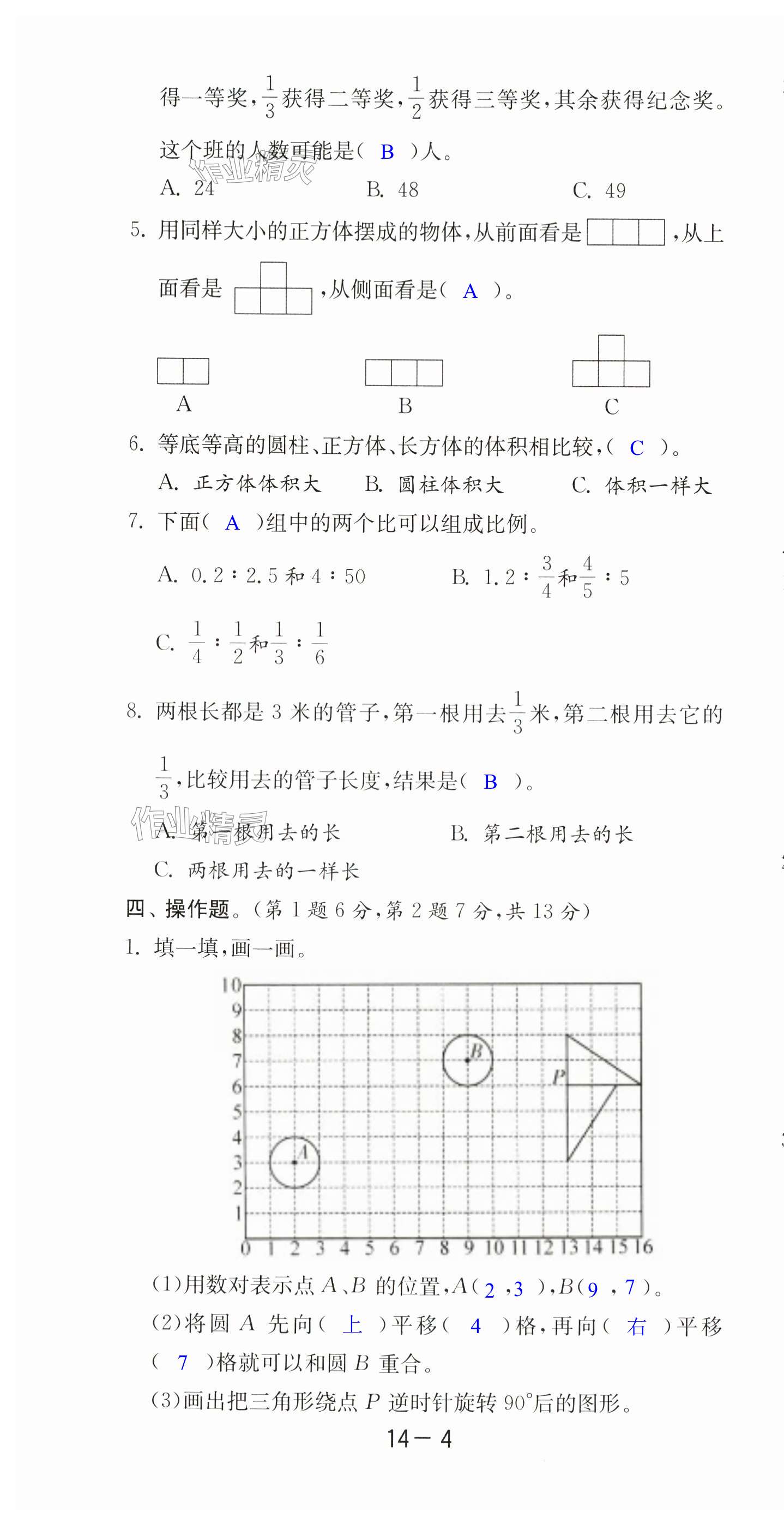 注:目前有些书本章节名称可能整理的还不是很完善,但都是按照顺序排列的,请同学们按照顺序仔细查找。练习册 2024年考必胜小学毕业升学考试试卷精选六年级数学淮安专版 答案主要是用来给同学们做完题方便对答案用的,请勿直接抄袭。