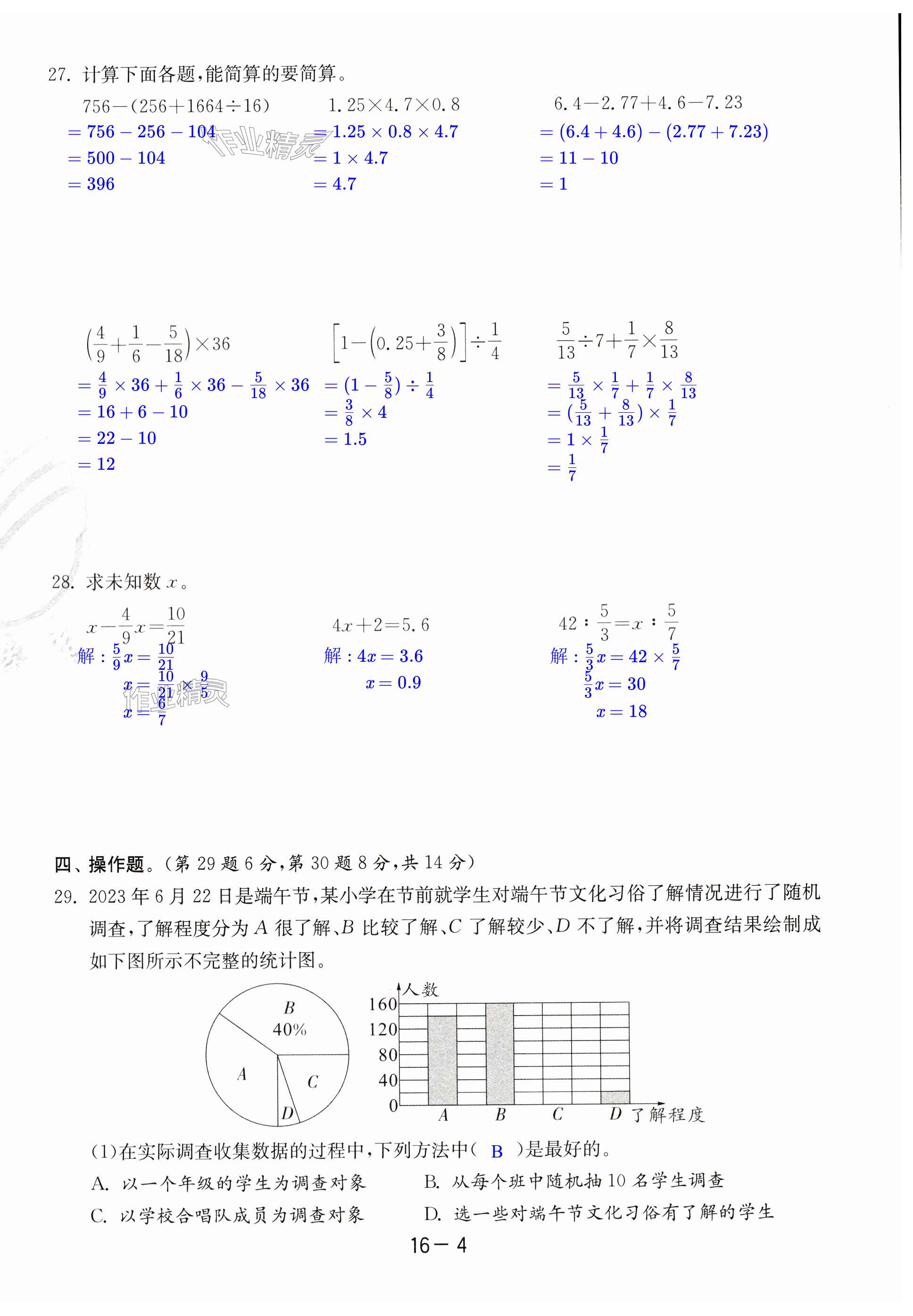 注:目前有些书本章节名称可能整理的还不是很完善,但都是按照顺序排列的,请同学们按照顺序仔细查找。练习册 2024年考必胜小学毕业升学考试试卷精选六年级数学淮安专版 答案主要是用来给同学们做完题方便对答案用的,请勿直接抄袭。