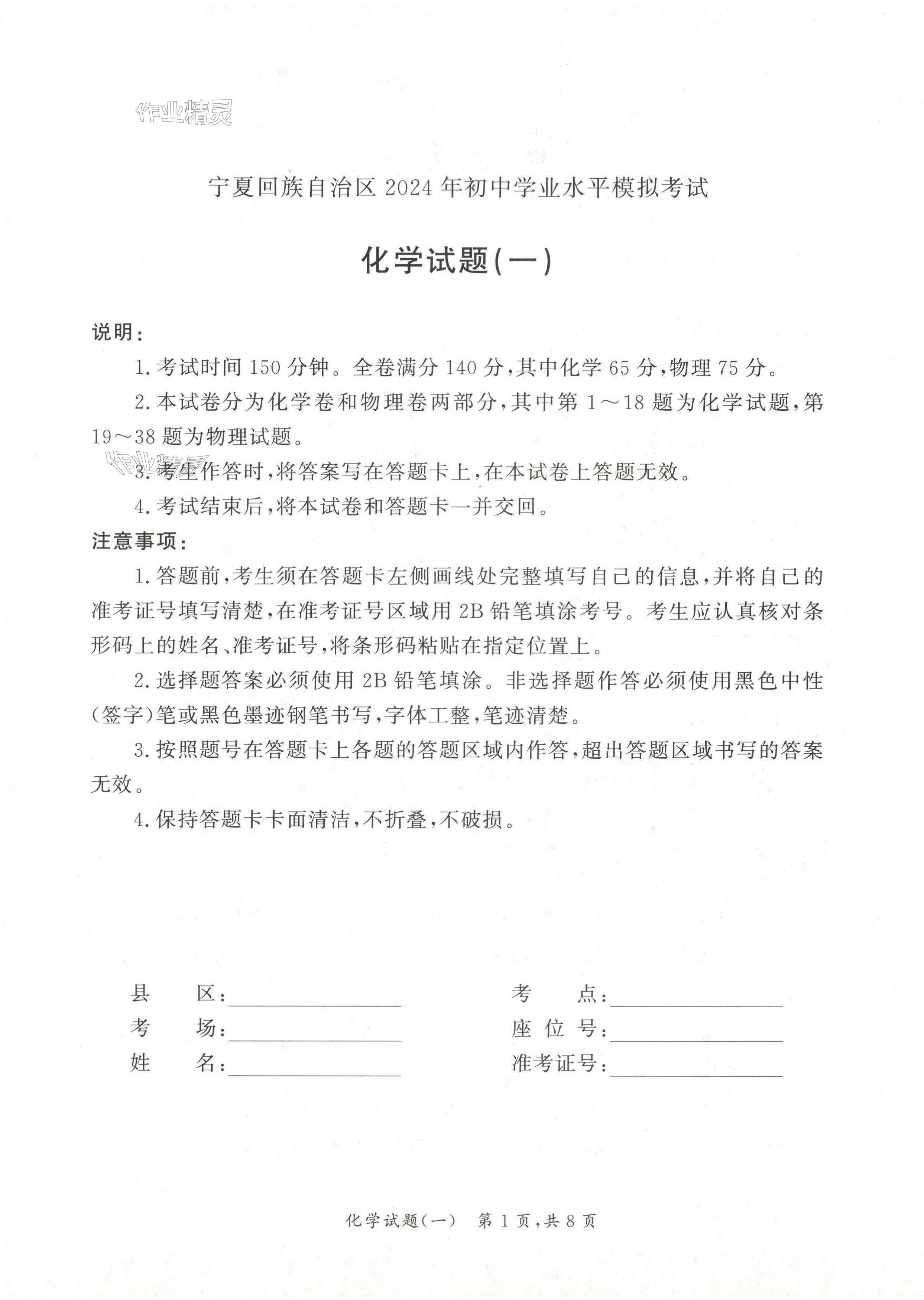 注:目前有些书本章节名称可能整理的还不是很完善,但都是按照顺序排列的,请同学们按照顺序仔细查找。练习册 2024年成功之路宁夏中考仿真模拟卷化学 答案主要是用来给同学们做完题方便对答案用的,请勿直接抄袭。