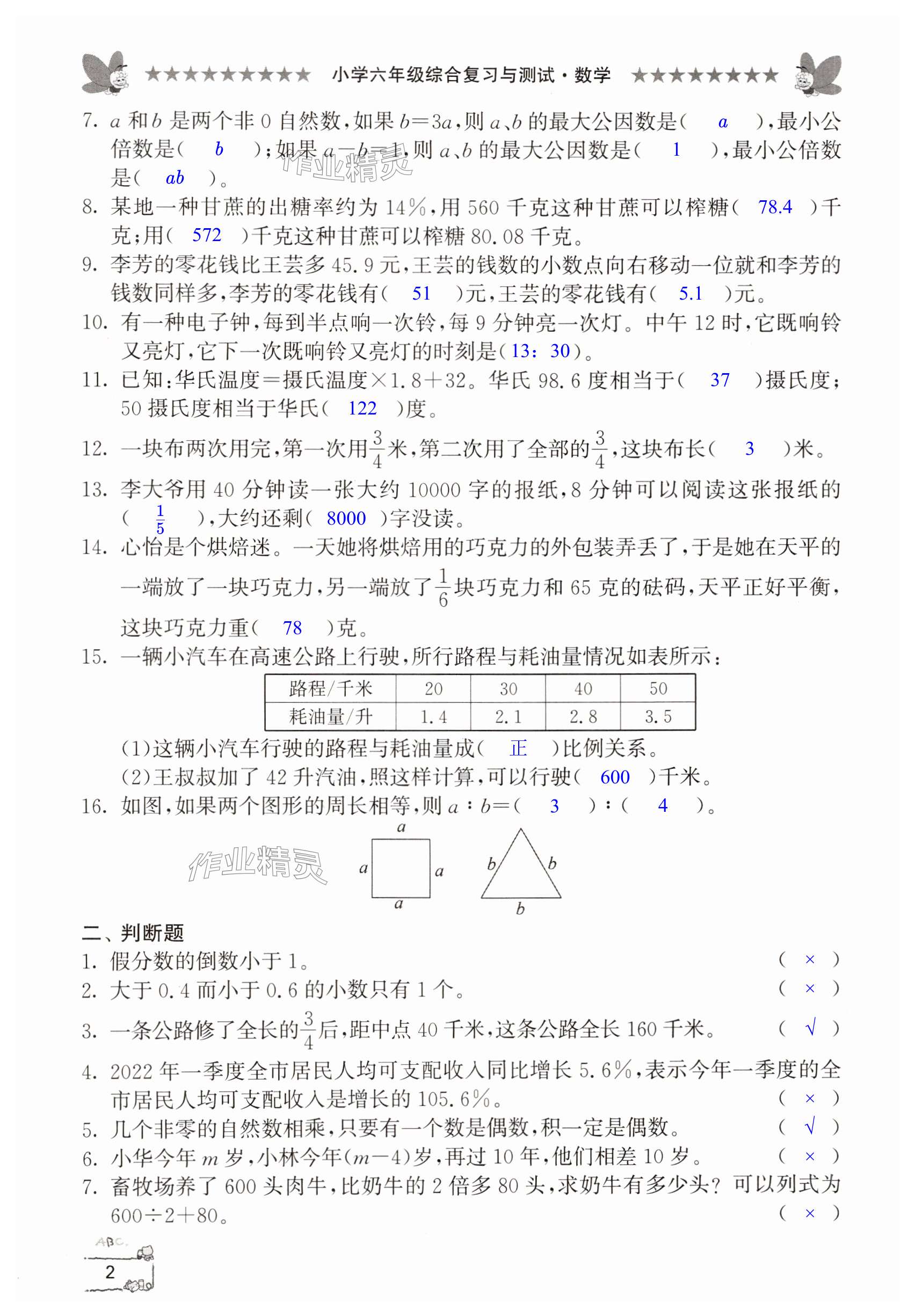 注:目前有些书本章节名称可能整理的还不是很完善,但都是按照顺序排列的,请同学们按照顺序仔细查找。练习册 2024年综合复习与测试六年级数学 答案主要是用来给同学们做完题方便对答案用的,请勿直接抄袭。
