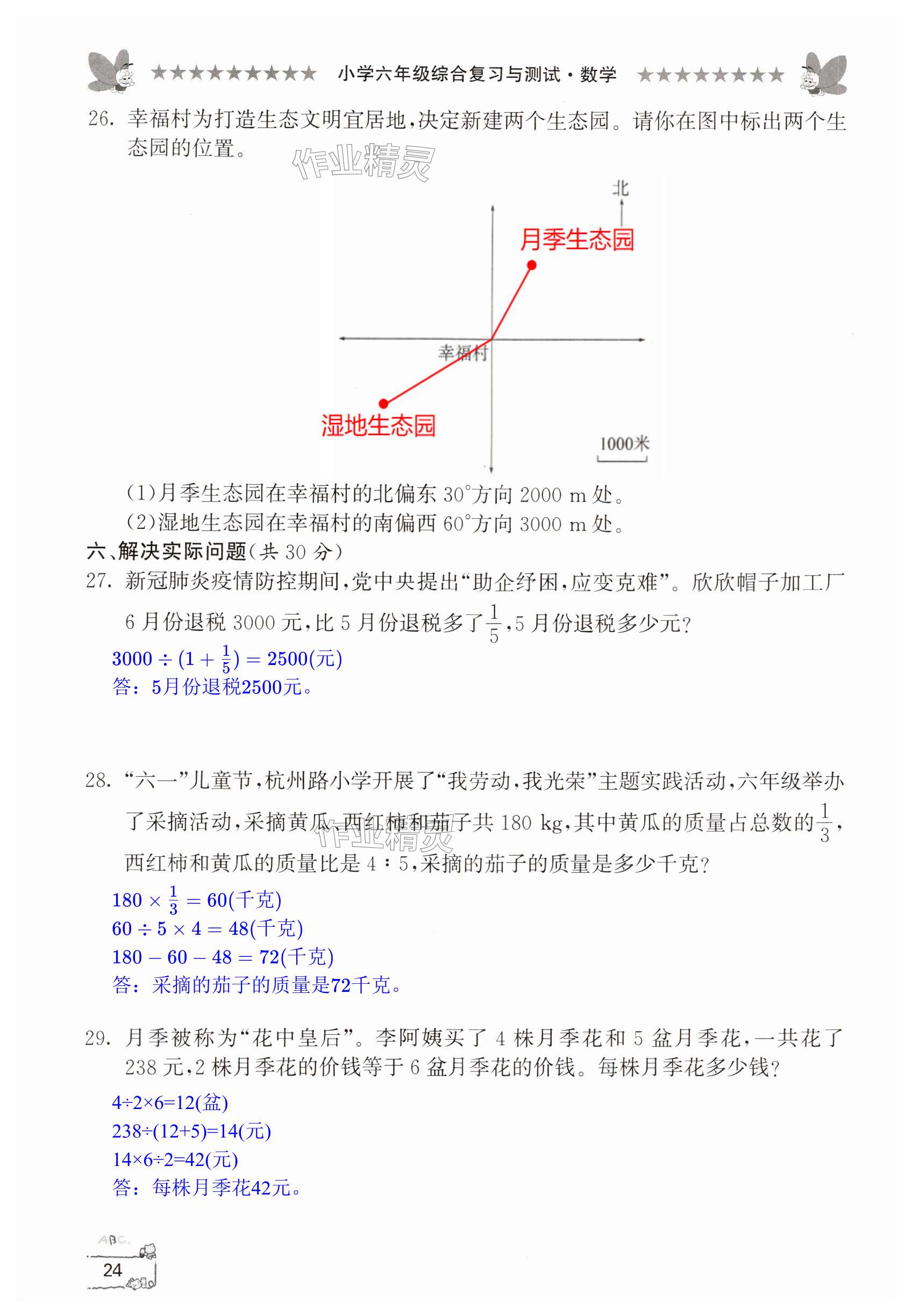注:目前有些书本章节名称可能整理的还不是很完善,但都是按照顺序排列的,请同学们按照顺序仔细查找。练习册 2024年综合复习与测试六年级数学 答案主要是用来给同学们做完题方便对答案用的,请勿直接抄袭。