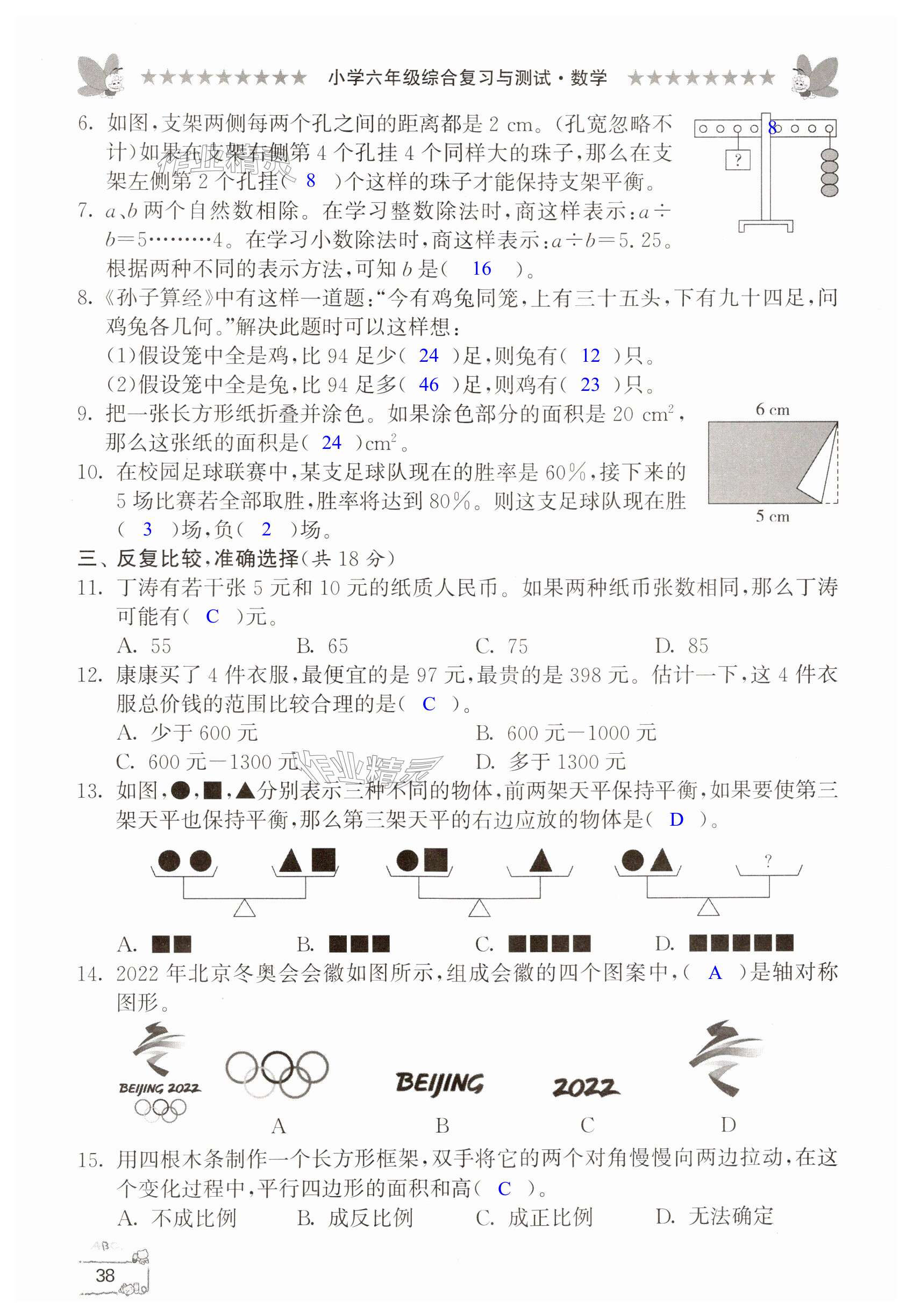 注:目前有些书本章节名称可能整理的还不是很完善,但都是按照顺序排列的,请同学们按照顺序仔细查找。练习册 2024年综合复习与测试六年级数学 答案主要是用来给同学们做完题方便对答案用的,请勿直接抄袭。