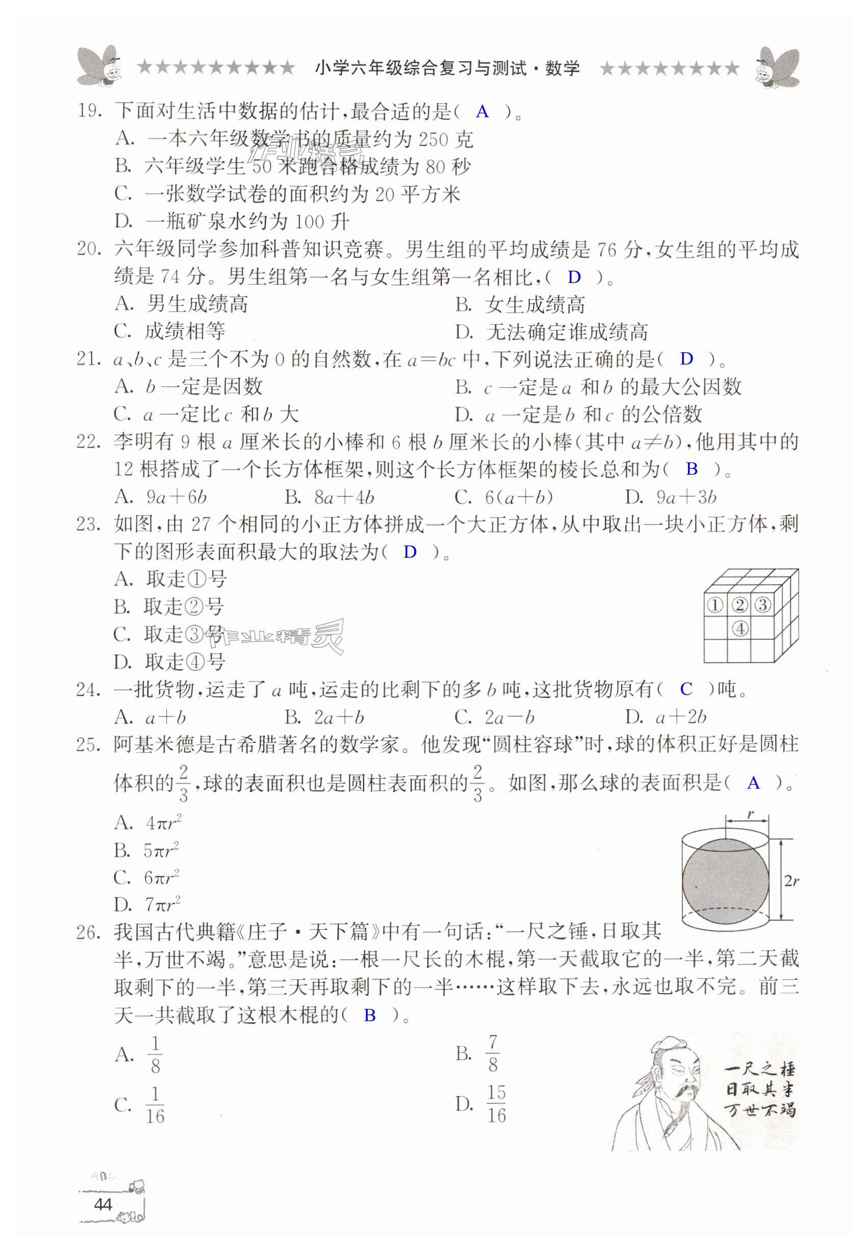 注:目前有些书本章节名称可能整理的还不是很完善,但都是按照顺序排列的,请同学们按照顺序仔细查找。练习册 2024年综合复习与测试六年级数学 答案主要是用来给同学们做完题方便对答案用的,请勿直接抄袭。