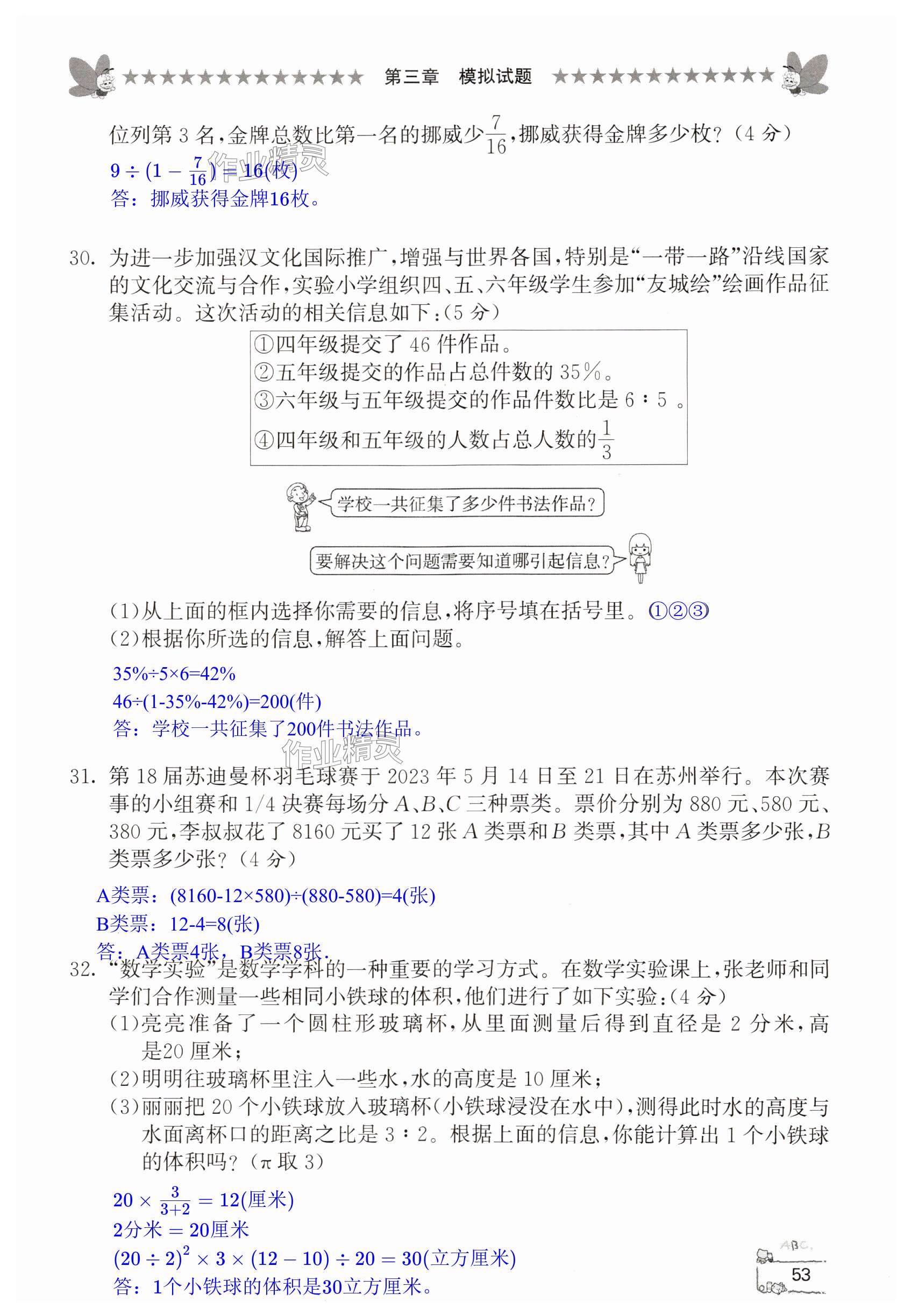 注:目前有些书本章节名称可能整理的还不是很完善,但都是按照顺序排列的,请同学们按照顺序仔细查找。练习册 2024年综合复习与测试六年级数学 答案主要是用来给同学们做完题方便对答案用的,请勿直接抄袭。