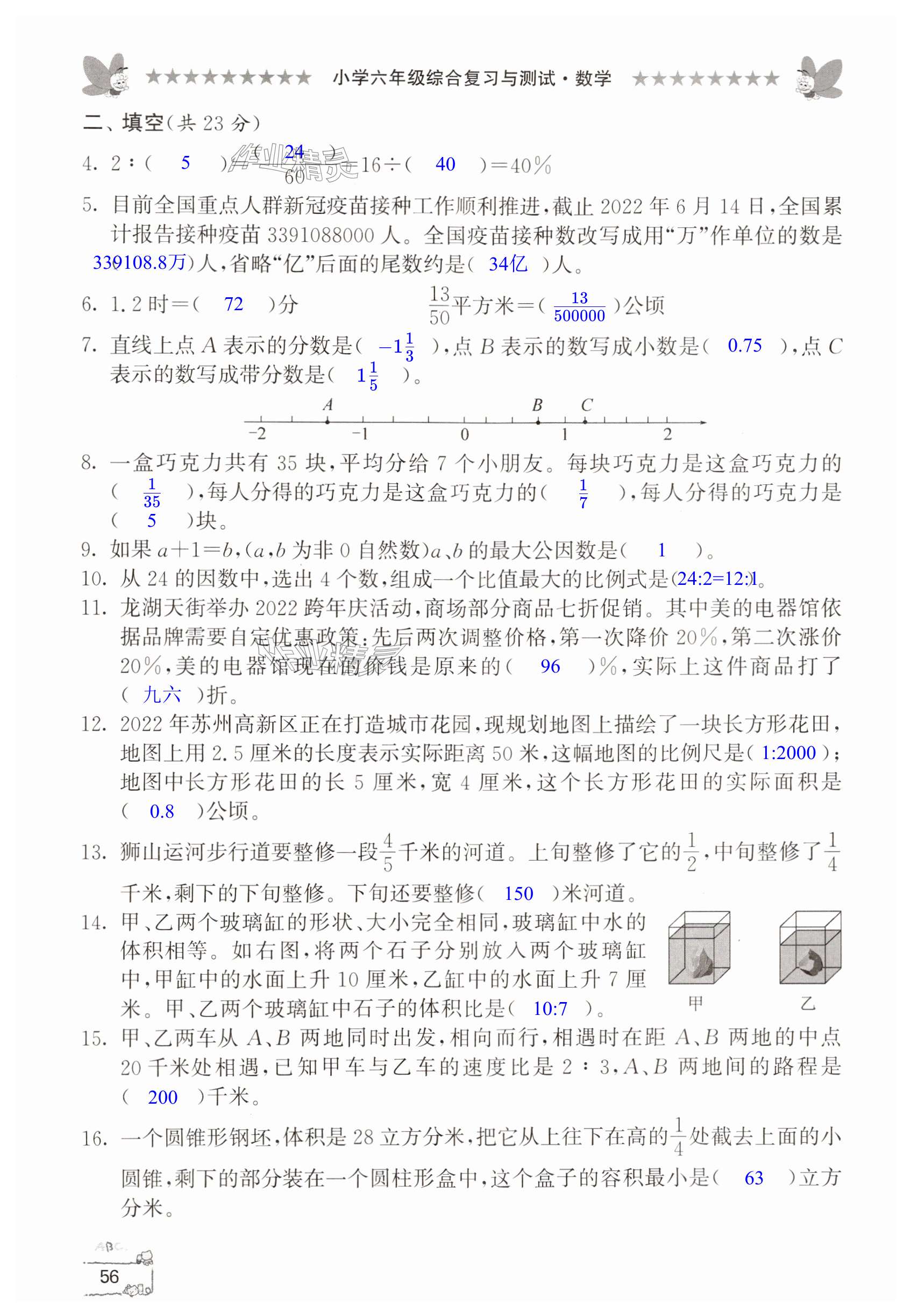 注:目前有些书本章节名称可能整理的还不是很完善,但都是按照顺序排列的,请同学们按照顺序仔细查找。练习册 2024年综合复习与测试六年级数学 答案主要是用来给同学们做完题方便对答案用的,请勿直接抄袭。