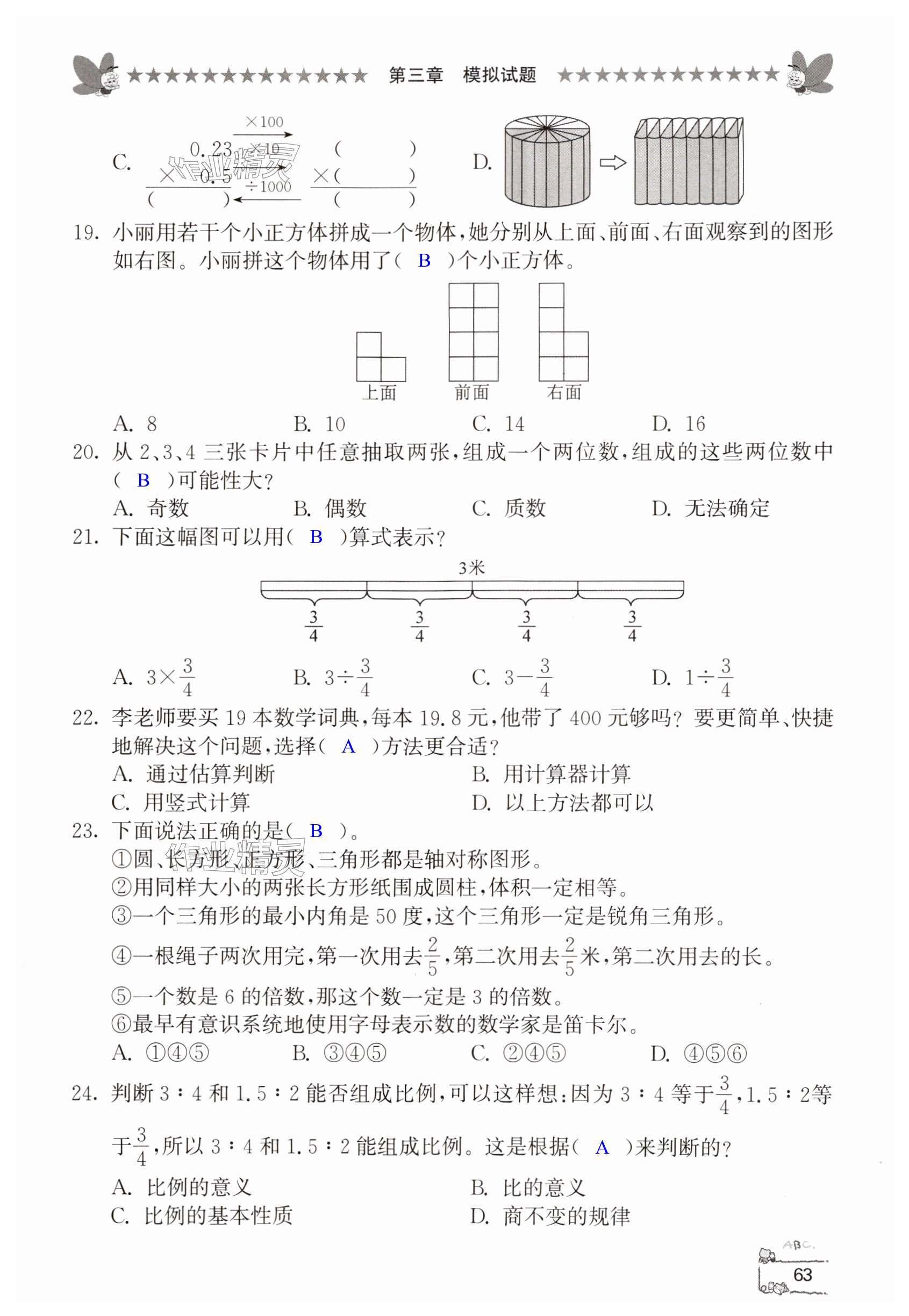 注:目前有些书本章节名称可能整理的还不是很完善,但都是按照顺序排列的,请同学们按照顺序仔细查找。练习册 2024年综合复习与测试六年级数学 答案主要是用来给同学们做完题方便对答案用的,请勿直接抄袭。