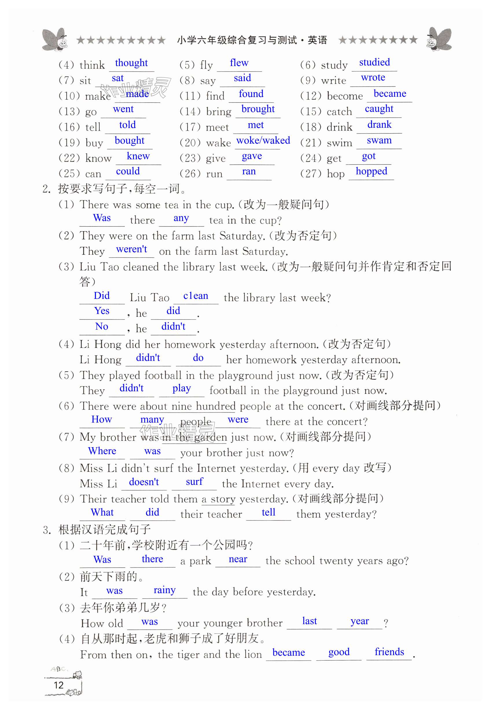 注:目前有些书本章节名称可能整理的还不是很完善,但都是按照顺序排列的,请同学们按照顺序仔细查找。练习册 2024年综合复习与测试六年级英语 答案主要是用来给同学们做完题方便对答案用的,请勿直接抄袭。