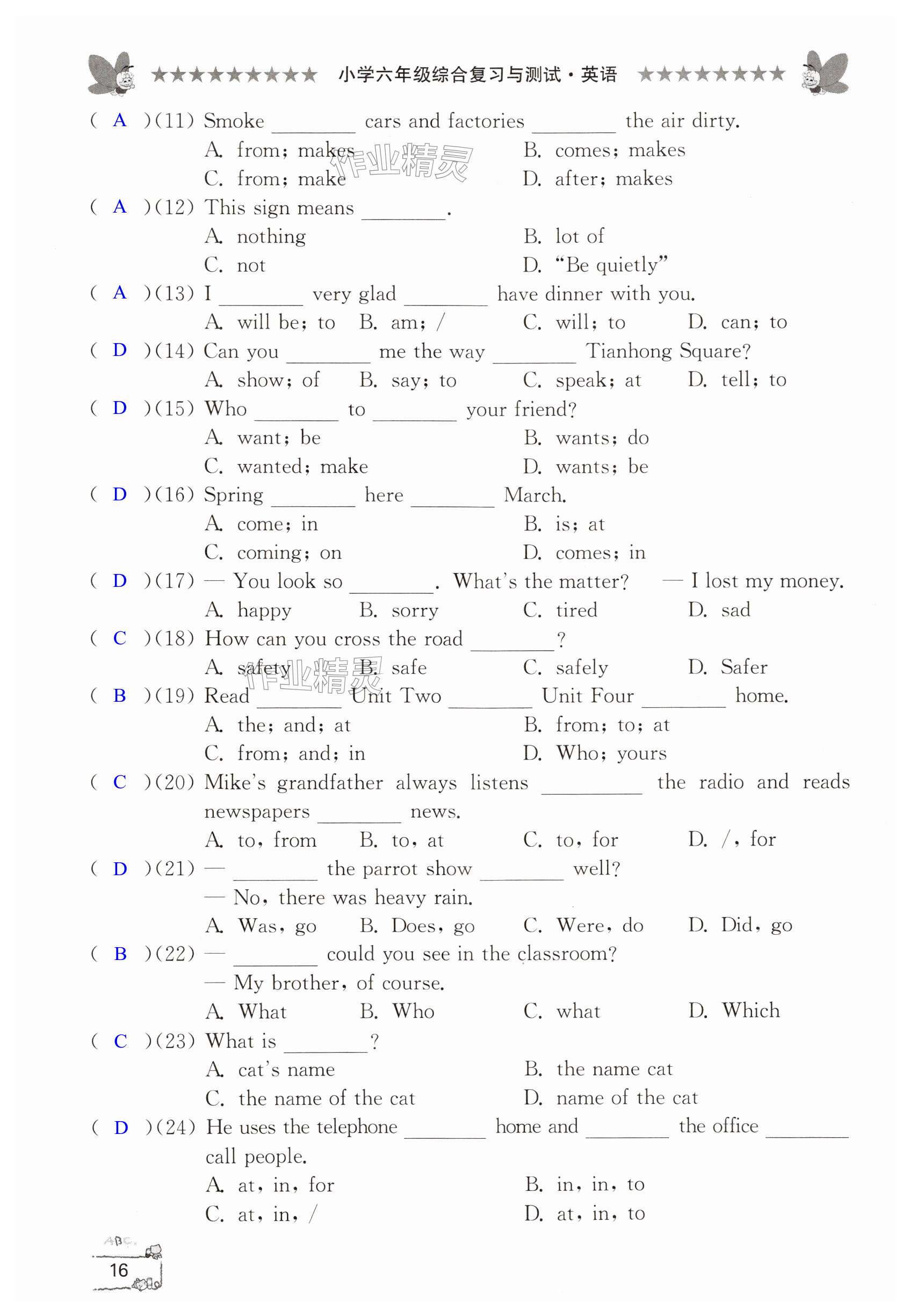 注:目前有些书本章节名称可能整理的还不是很完善,但都是按照顺序排列的,请同学们按照顺序仔细查找。练习册 2024年综合复习与测试六年级英语 答案主要是用来给同学们做完题方便对答案用的,请勿直接抄袭。