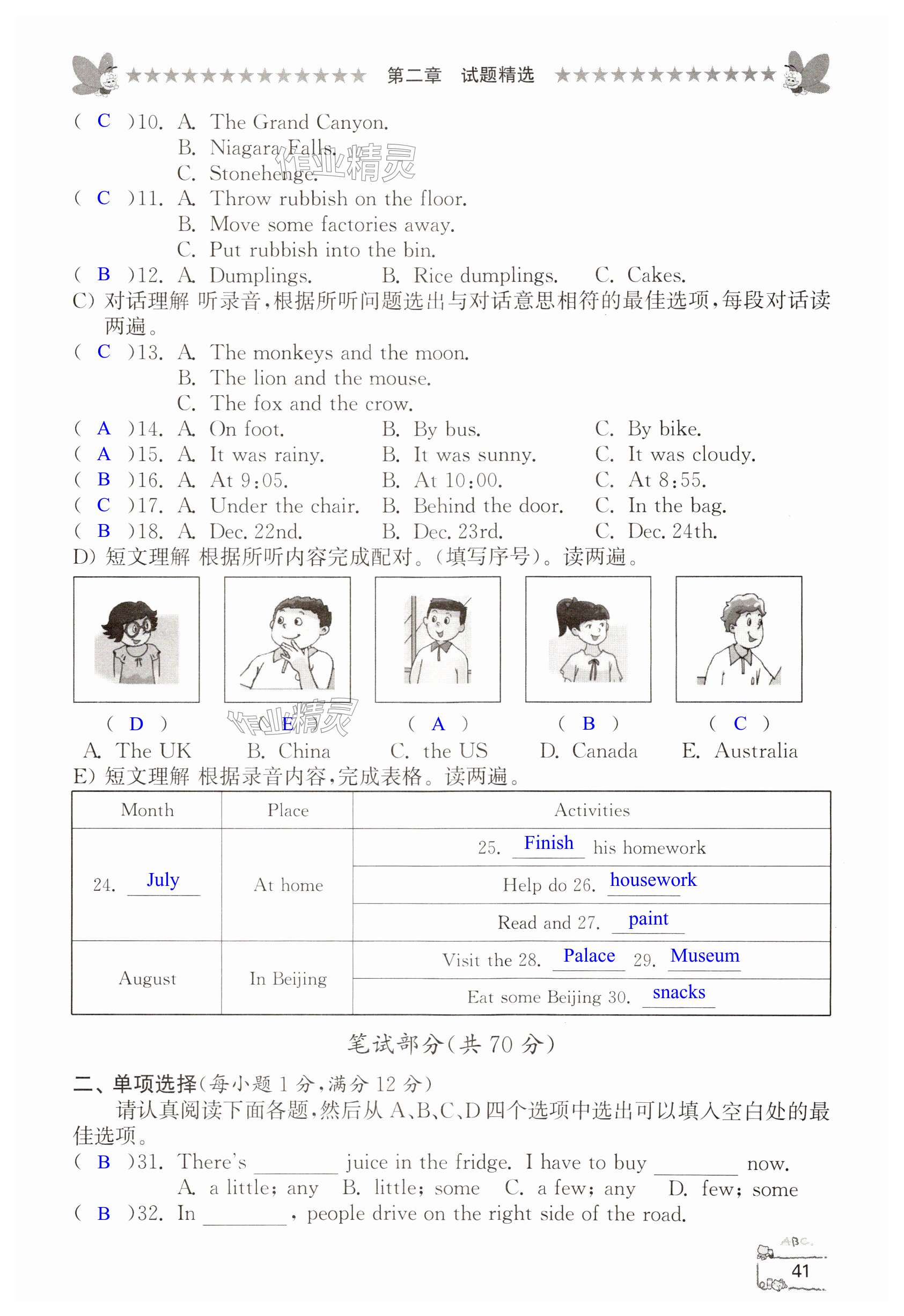 注:目前有些书本章节名称可能整理的还不是很完善,但都是按照顺序排列的,请同学们按照顺序仔细查找。练习册 2024年综合复习与测试六年级英语 答案主要是用来给同学们做完题方便对答案用的,请勿直接抄袭。
