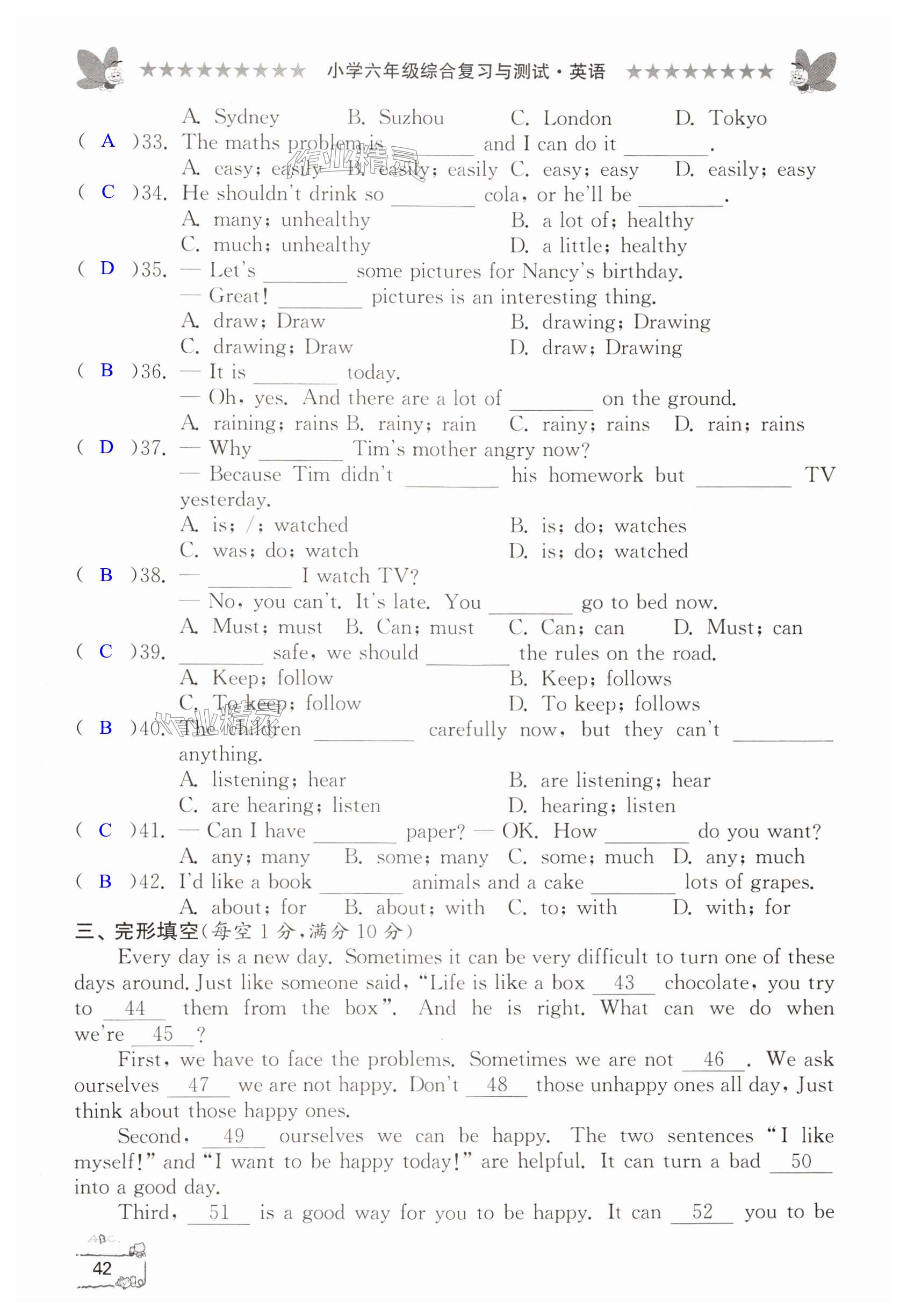 注:目前有些书本章节名称可能整理的还不是很完善,但都是按照顺序排列的,请同学们按照顺序仔细查找。练习册 2024年综合复习与测试六年级英语 答案主要是用来给同学们做完题方便对答案用的,请勿直接抄袭。