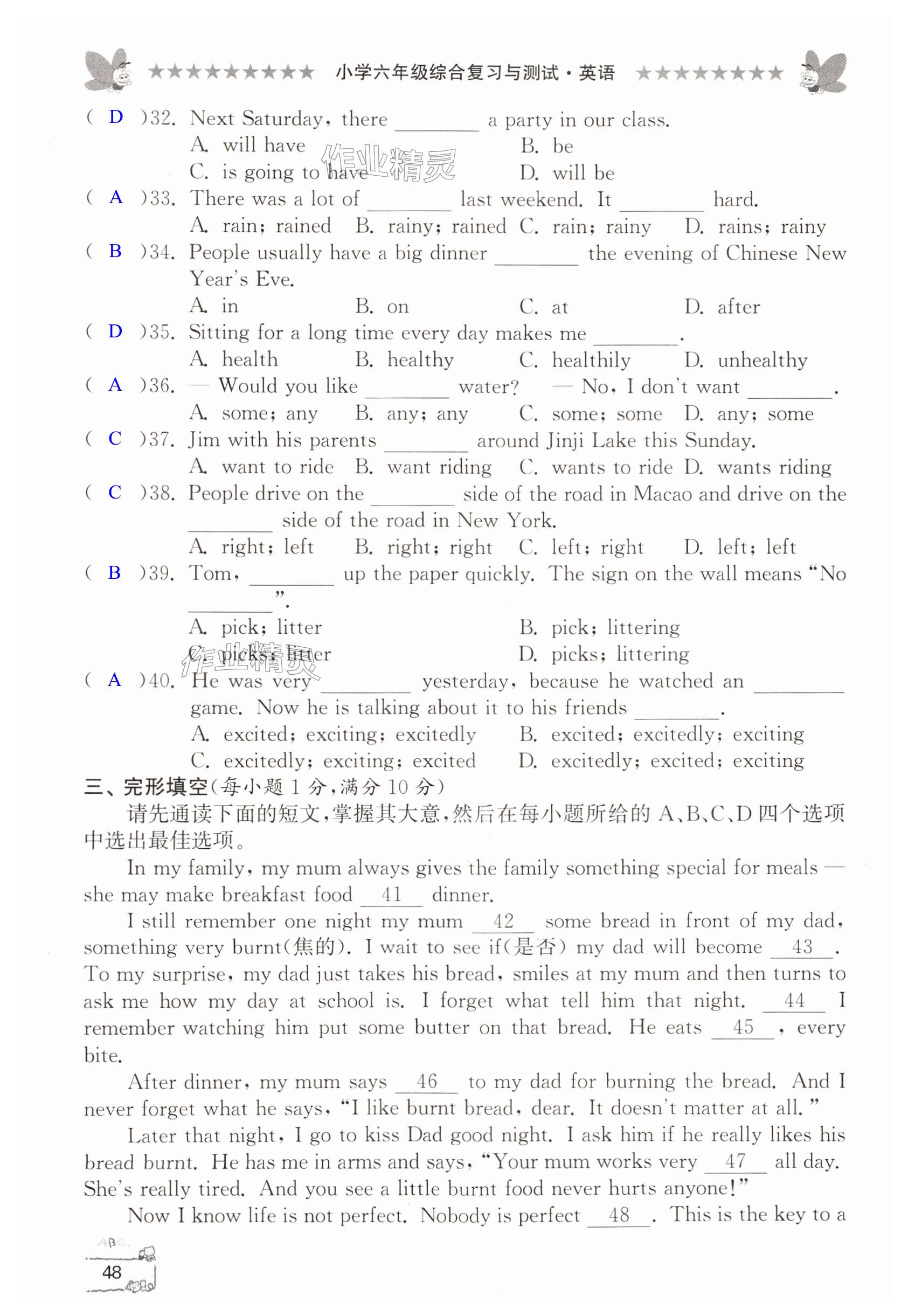注:目前有些书本章节名称可能整理的还不是很完善,但都是按照顺序排列的,请同学们按照顺序仔细查找。练习册 2024年综合复习与测试六年级英语 答案主要是用来给同学们做完题方便对答案用的,请勿直接抄袭。