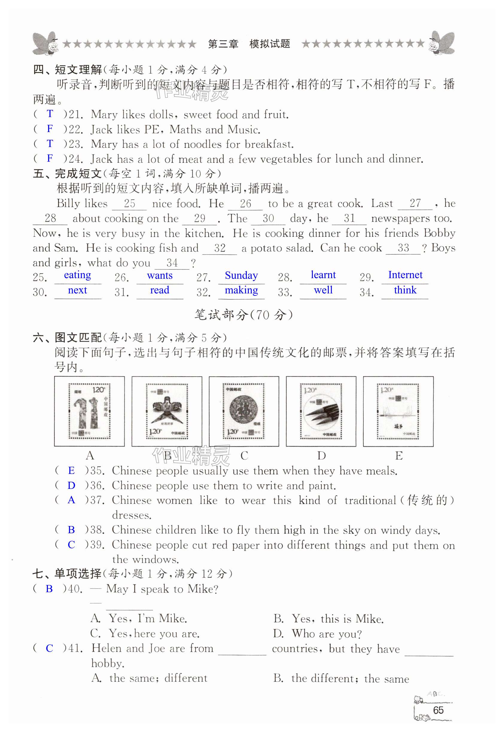 注:目前有些书本章节名称可能整理的还不是很完善,但都是按照顺序排列的,请同学们按照顺序仔细查找。练习册 2024年综合复习与测试六年级英语 答案主要是用来给同学们做完题方便对答案用的,请勿直接抄袭。
