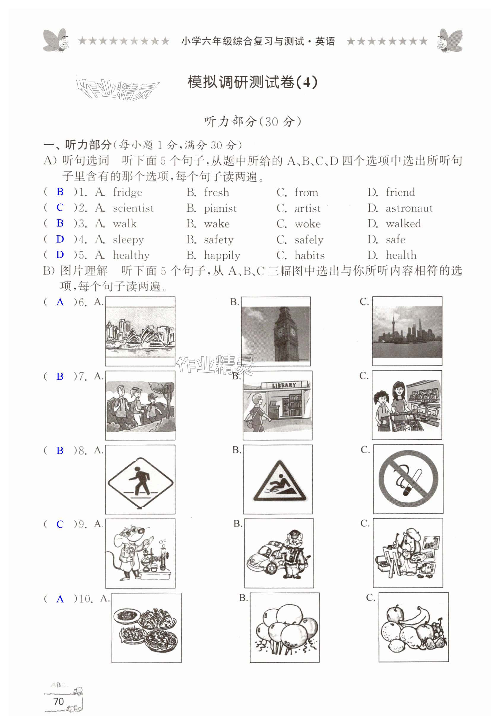 注:目前有些书本章节名称可能整理的还不是很完善,但都是按照顺序排列的,请同学们按照顺序仔细查找。练习册 2024年综合复习与测试六年级英语 答案主要是用来给同学们做完题方便对答案用的,请勿直接抄袭。