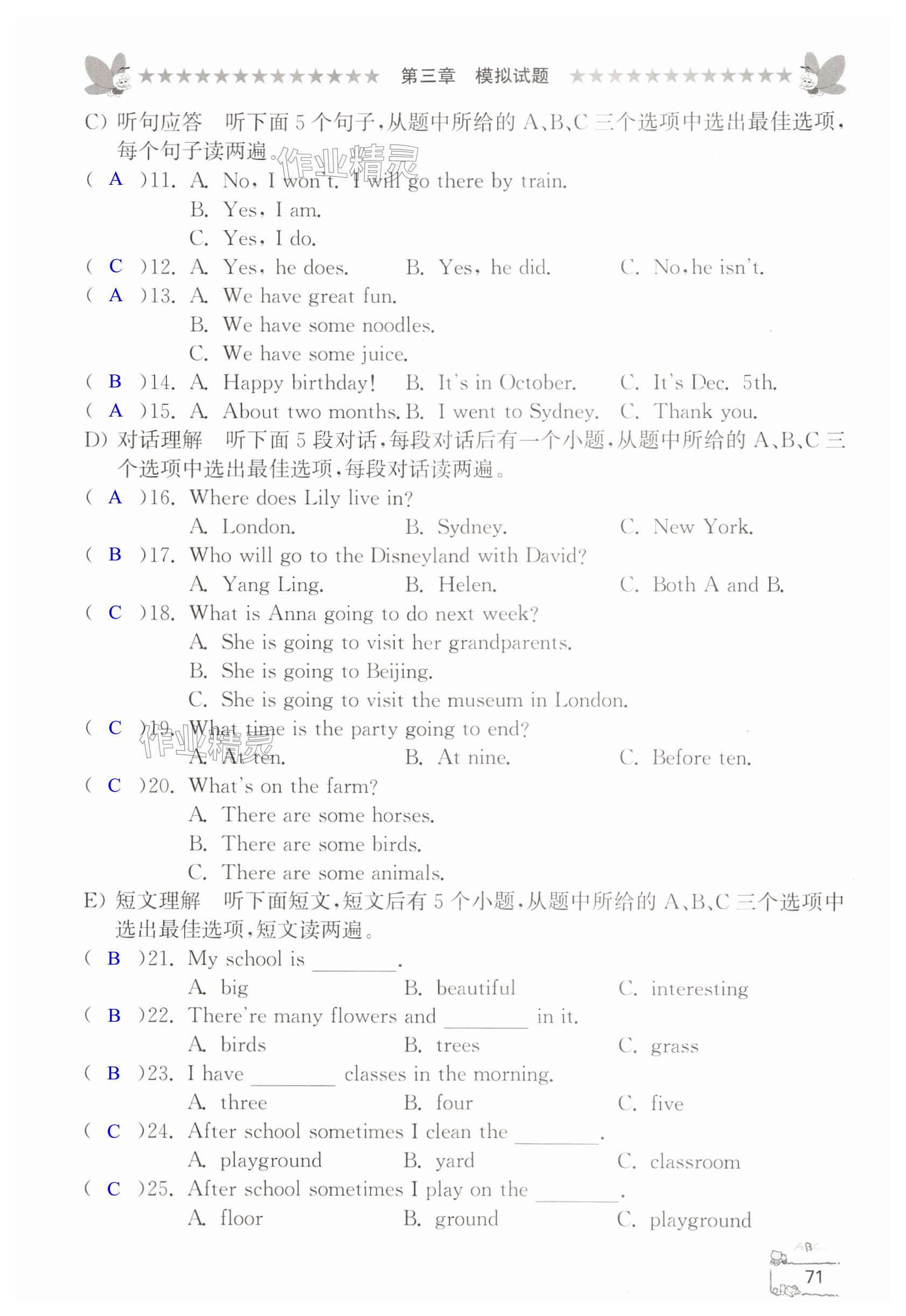 注:目前有些书本章节名称可能整理的还不是很完善,但都是按照顺序排列的,请同学们按照顺序仔细查找。练习册 2024年综合复习与测试六年级英语 答案主要是用来给同学们做完题方便对答案用的,请勿直接抄袭。