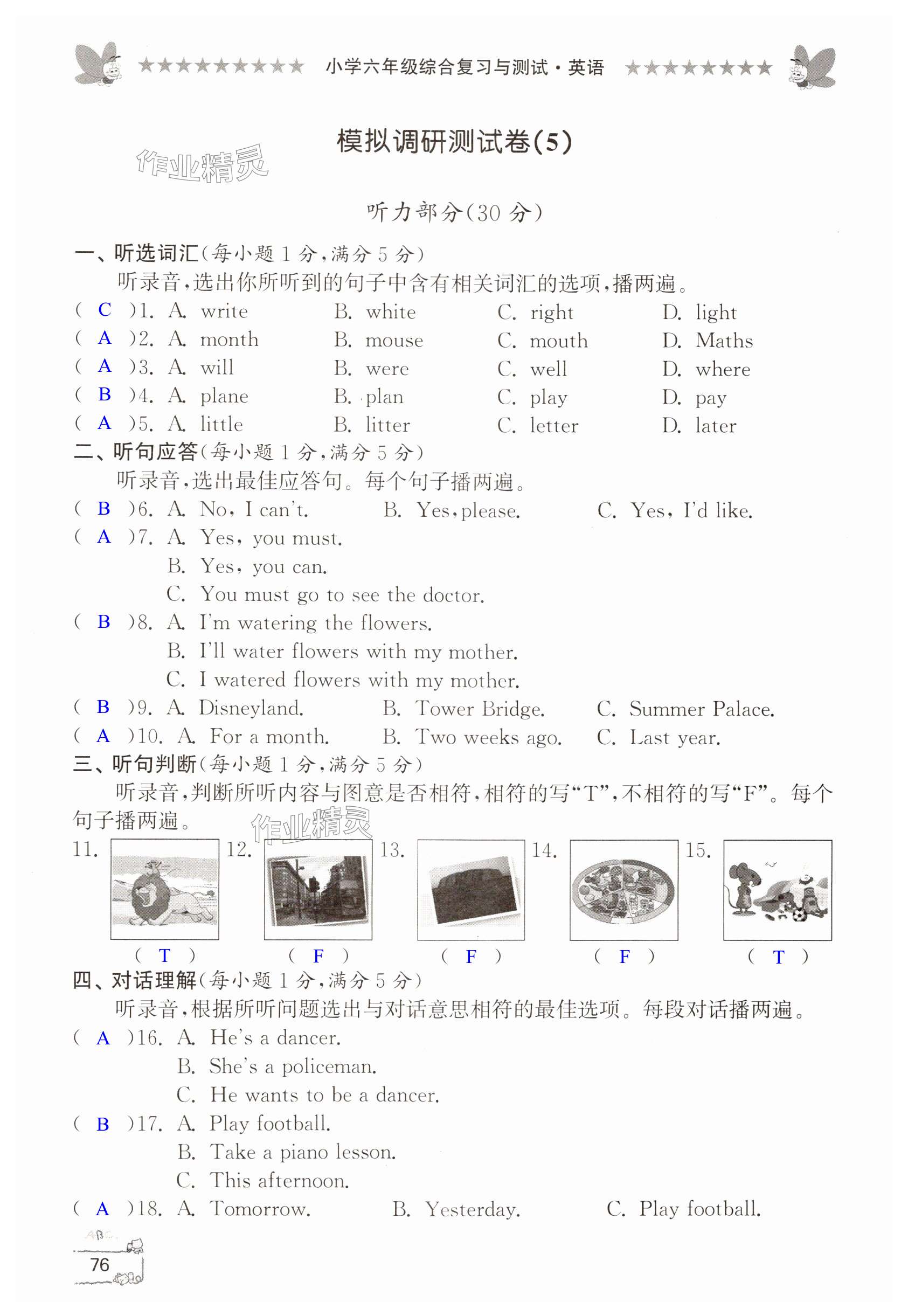 注:目前有些书本章节名称可能整理的还不是很完善,但都是按照顺序排列的,请同学们按照顺序仔细查找。练习册 2024年综合复习与测试六年级英语 答案主要是用来给同学们做完题方便对答案用的,请勿直接抄袭。