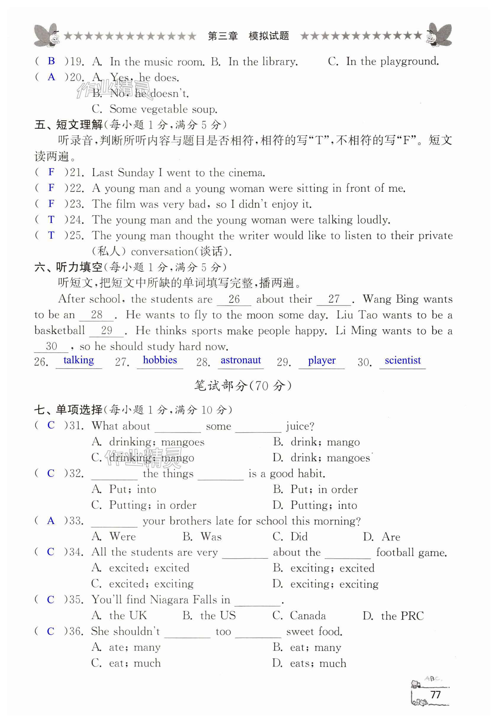 注:目前有些书本章节名称可能整理的还不是很完善,但都是按照顺序排列的,请同学们按照顺序仔细查找。练习册 2024年综合复习与测试六年级英语 答案主要是用来给同学们做完题方便对答案用的,请勿直接抄袭。