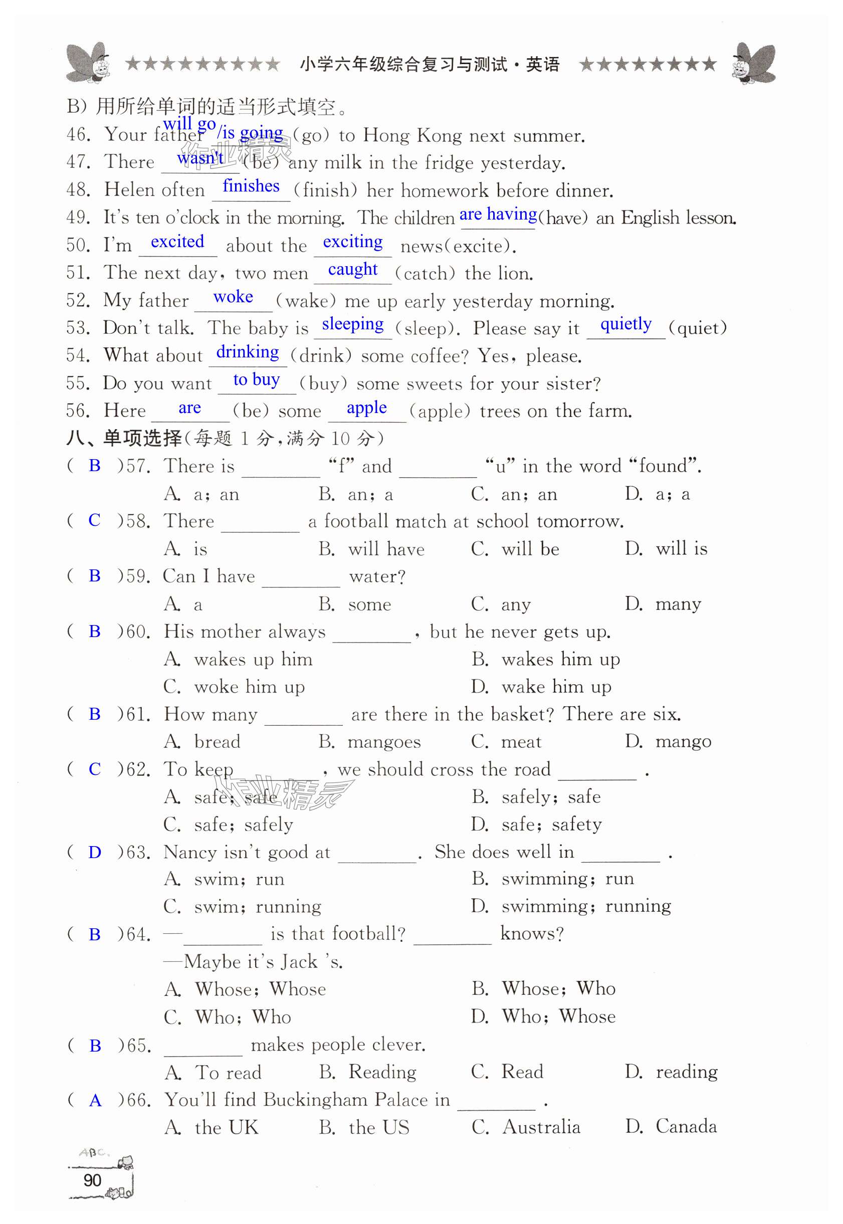 2024年综合复习与测试六年级英语