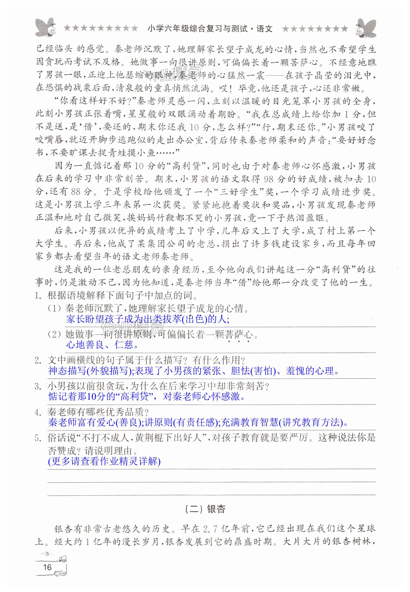 注:目前有些书本章节名称可能整理的还不是很完善,但都是按照顺序排列的,请同学们按照顺序仔细查找。练习册 2024年综合复习与测试语文 答案主要是用来给同学们做完题方便对答案用的,请勿直接抄袭。