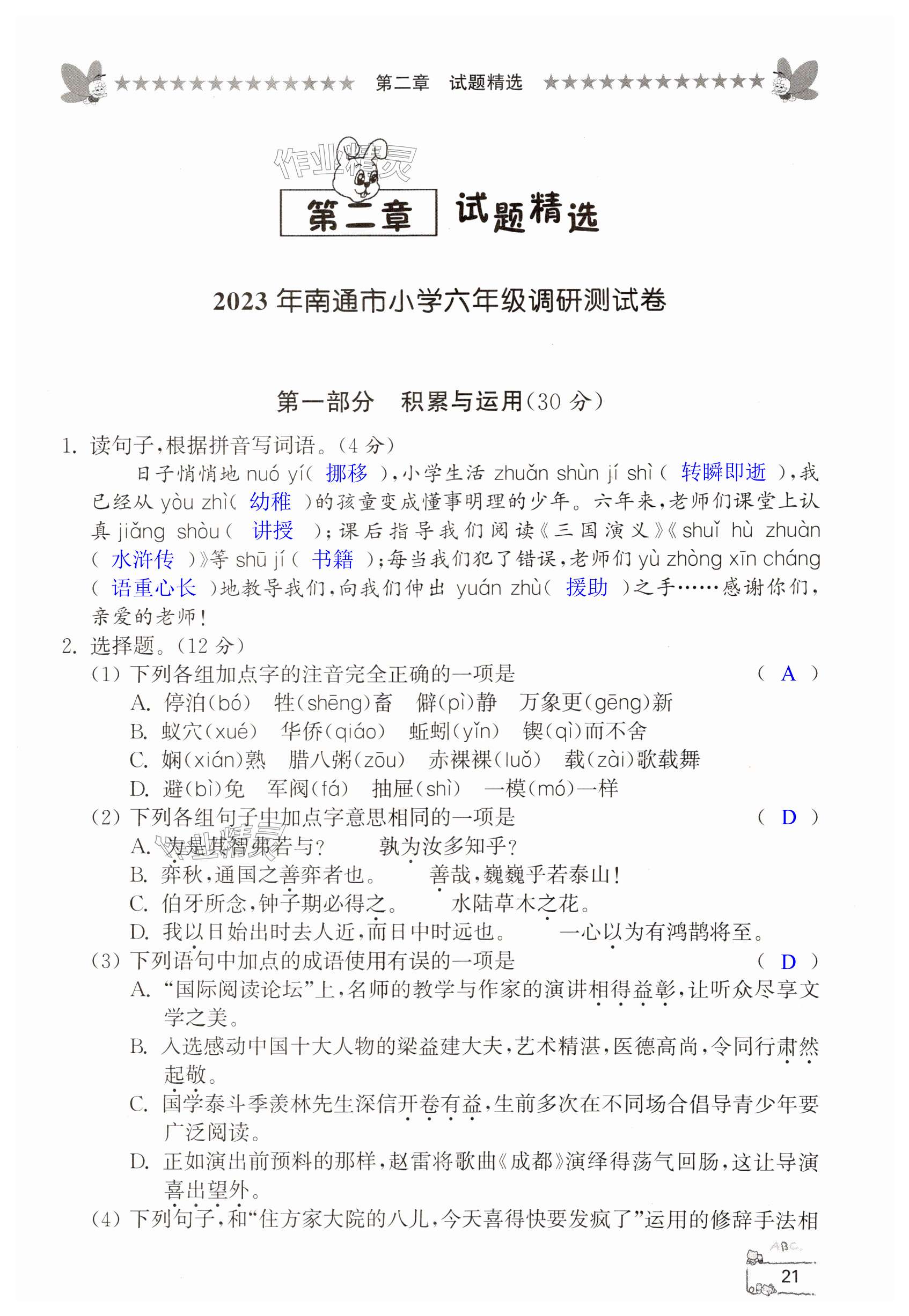 注:目前有些书本章节名称可能整理的还不是很完善,但都是按照顺序排列的,请同学们按照顺序仔细查找。练习册 2024年综合复习与测试语文 答案主要是用来给同学们做完题方便对答案用的,请勿直接抄袭。