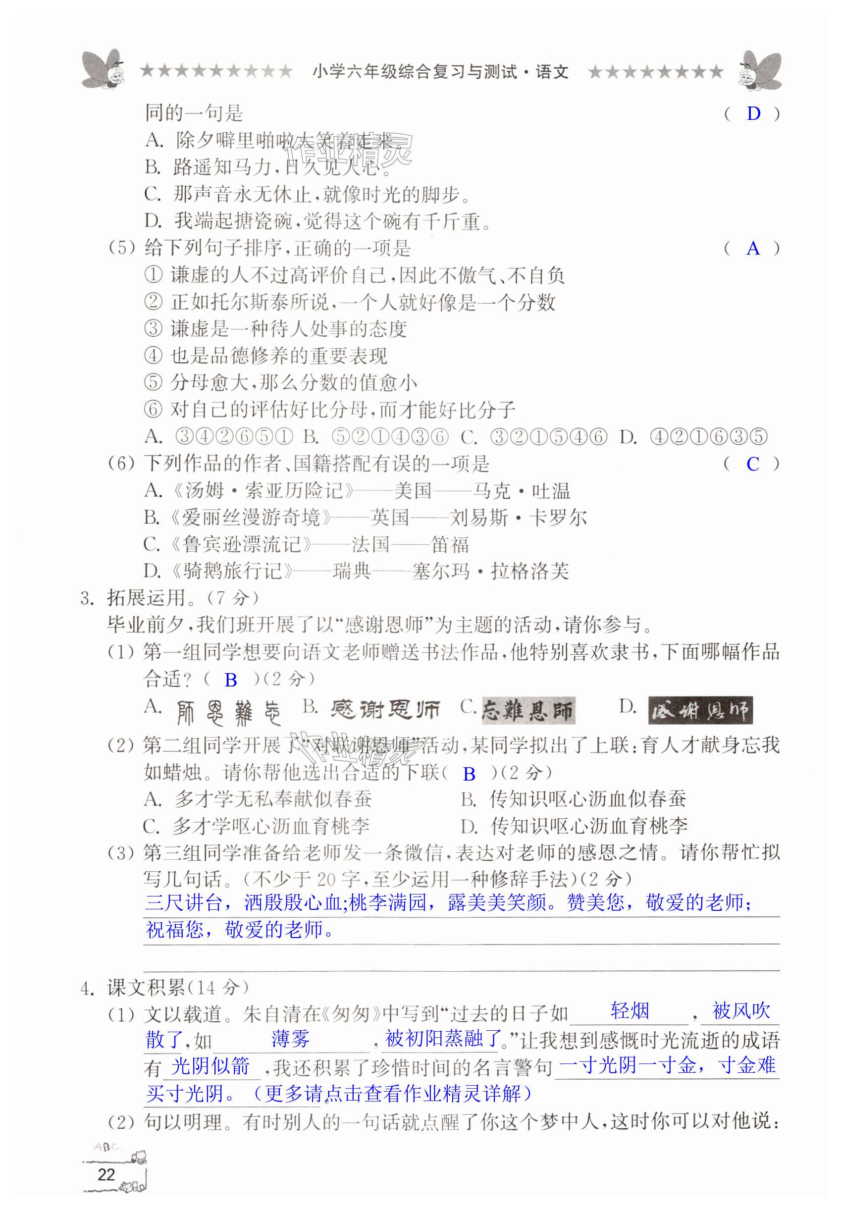 注:目前有些书本章节名称可能整理的还不是很完善,但都是按照顺序排列的,请同学们按照顺序仔细查找。练习册 2024年综合复习与测试语文 答案主要是用来给同学们做完题方便对答案用的,请勿直接抄袭。