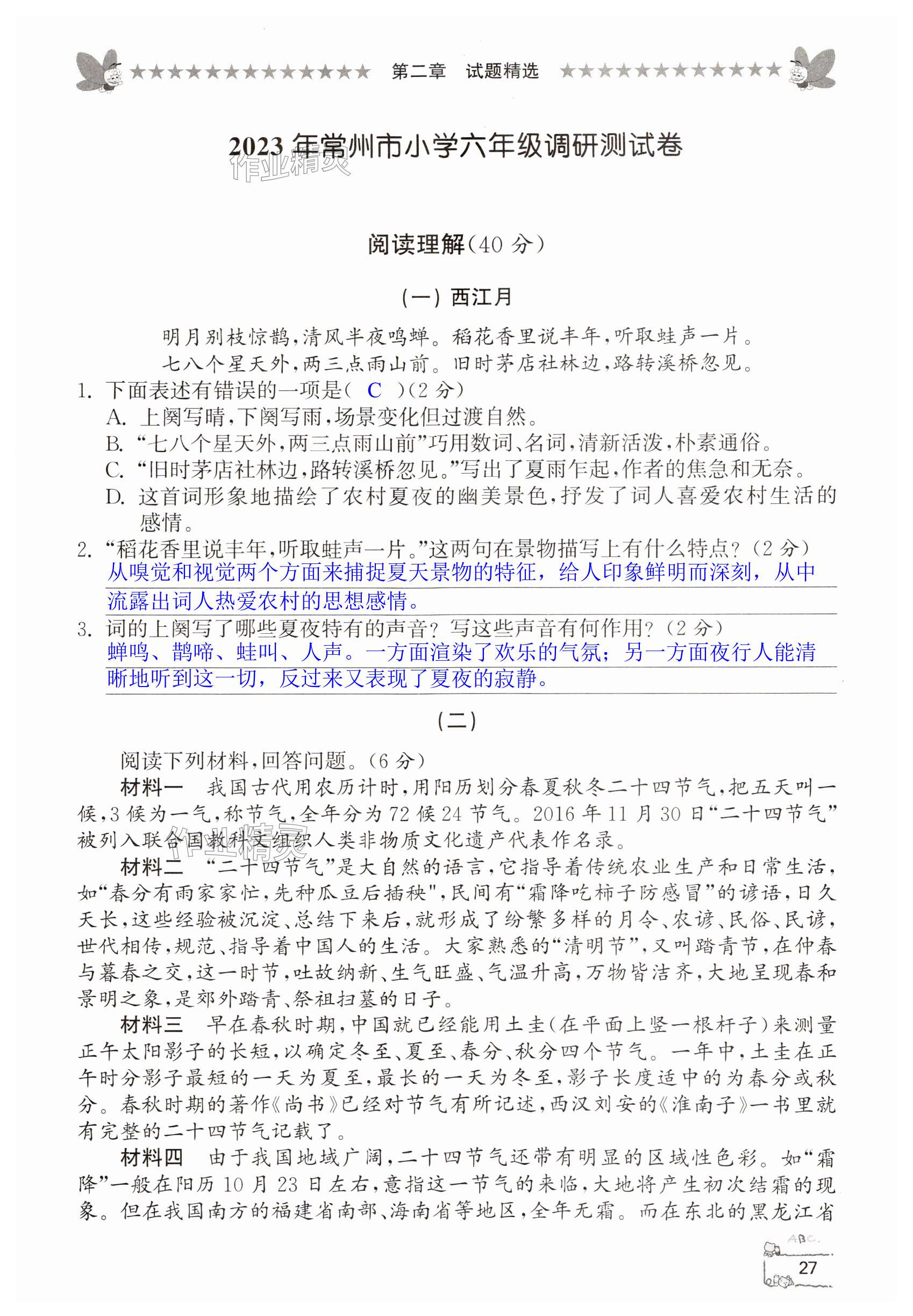 注:目前有些书本章节名称可能整理的还不是很完善,但都是按照顺序排列的,请同学们按照顺序仔细查找。练习册 2024年综合复习与测试语文 答案主要是用来给同学们做完题方便对答案用的,请勿直接抄袭。