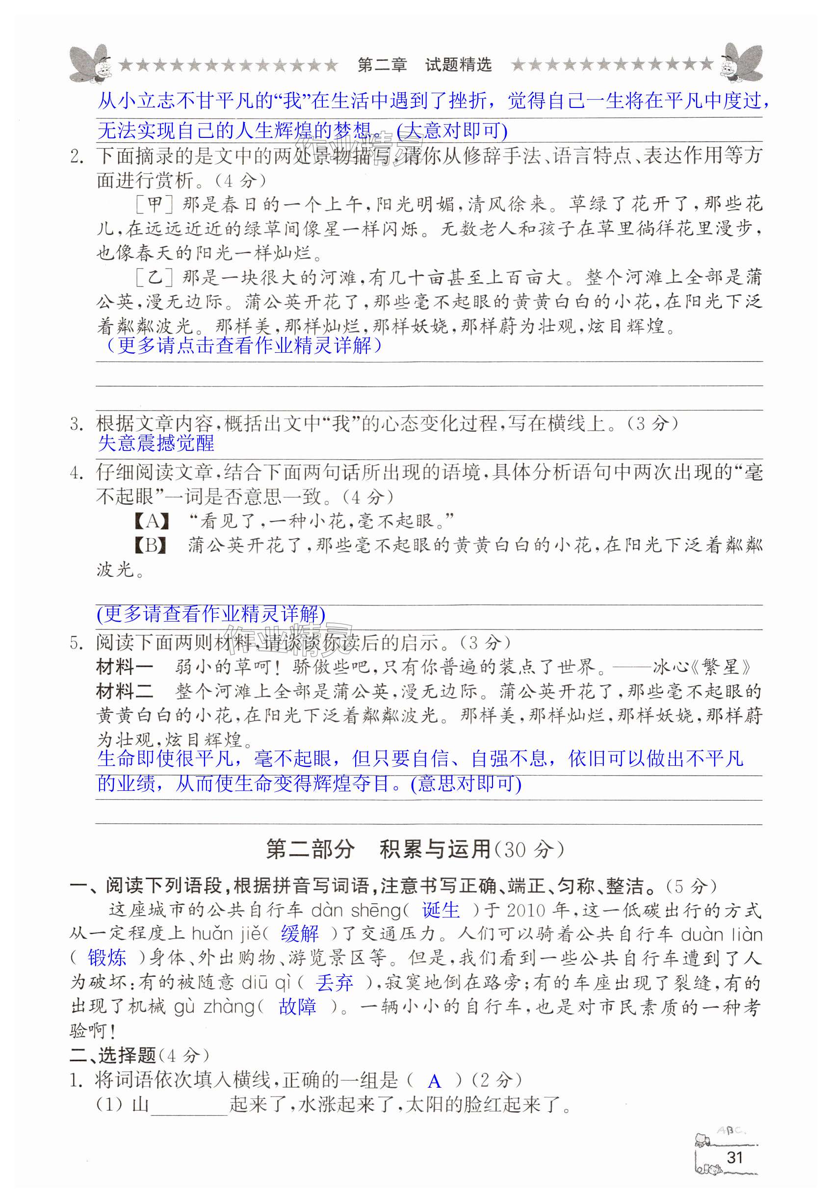 注:目前有些书本章节名称可能整理的还不是很完善,但都是按照顺序排列的,请同学们按照顺序仔细查找。练习册 2024年综合复习与测试语文 答案主要是用来给同学们做完题方便对答案用的,请勿直接抄袭。