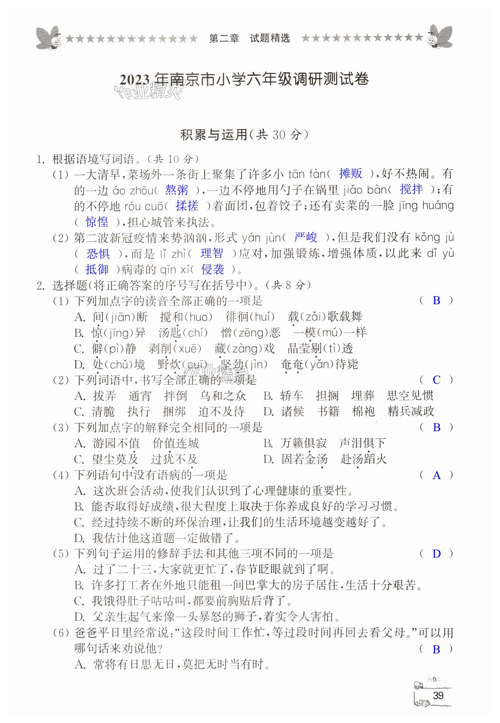 注:目前有些书本章节名称可能整理的还不是很完善,但都是按照顺序排列的,请同学们按照顺序仔细查找。练习册 2024年综合复习与测试语文 答案主要是用来给同学们做完题方便对答案用的,请勿直接抄袭。