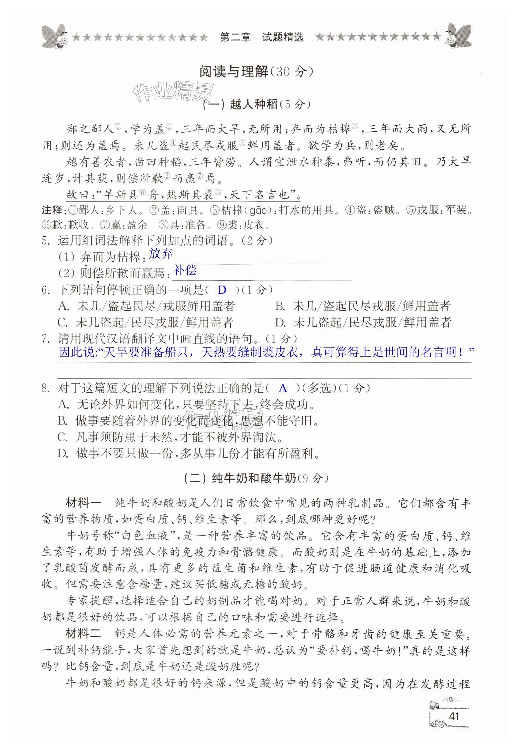 注:目前有些书本章节名称可能整理的还不是很完善,但都是按照顺序排列的,请同学们按照顺序仔细查找。练习册 2024年综合复习与测试语文 答案主要是用来给同学们做完题方便对答案用的,请勿直接抄袭。
