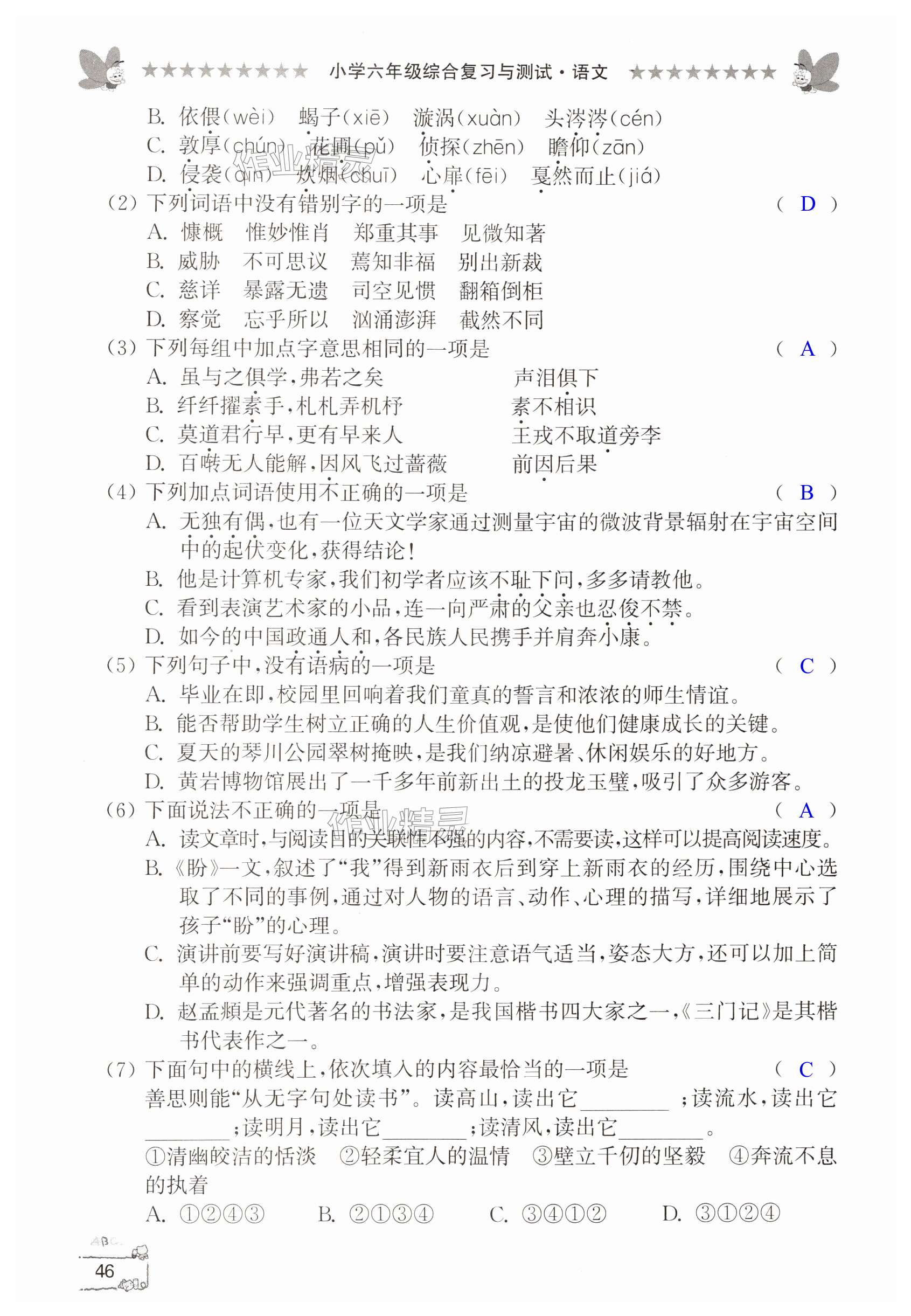 注:目前有些书本章节名称可能整理的还不是很完善,但都是按照顺序排列的,请同学们按照顺序仔细查找。练习册 2024年综合复习与测试语文 答案主要是用来给同学们做完题方便对答案用的,请勿直接抄袭。