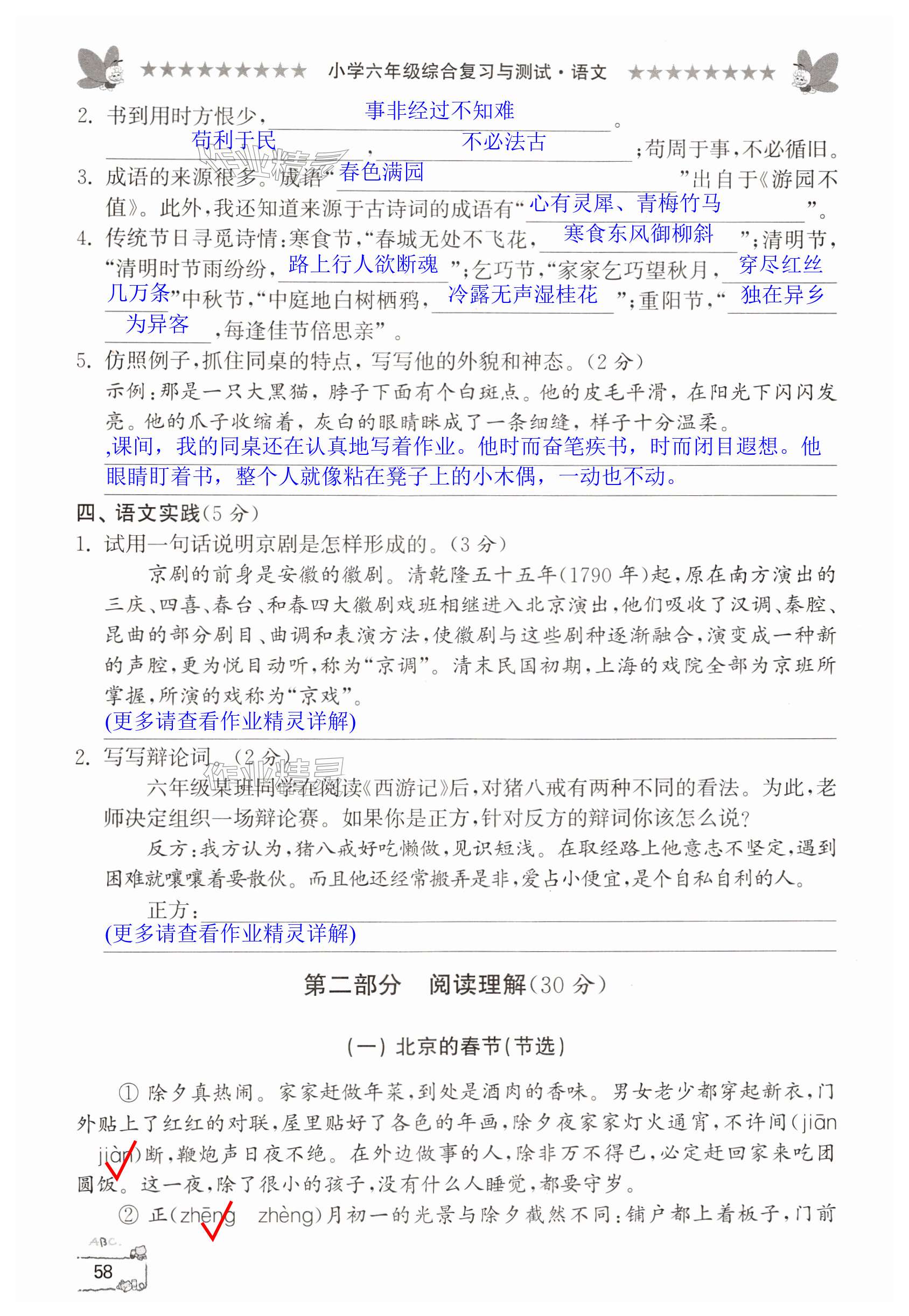注:目前有些书本章节名称可能整理的还不是很完善,但都是按照顺序排列的,请同学们按照顺序仔细查找。练习册 2024年综合复习与测试语文 答案主要是用来给同学们做完题方便对答案用的,请勿直接抄袭。