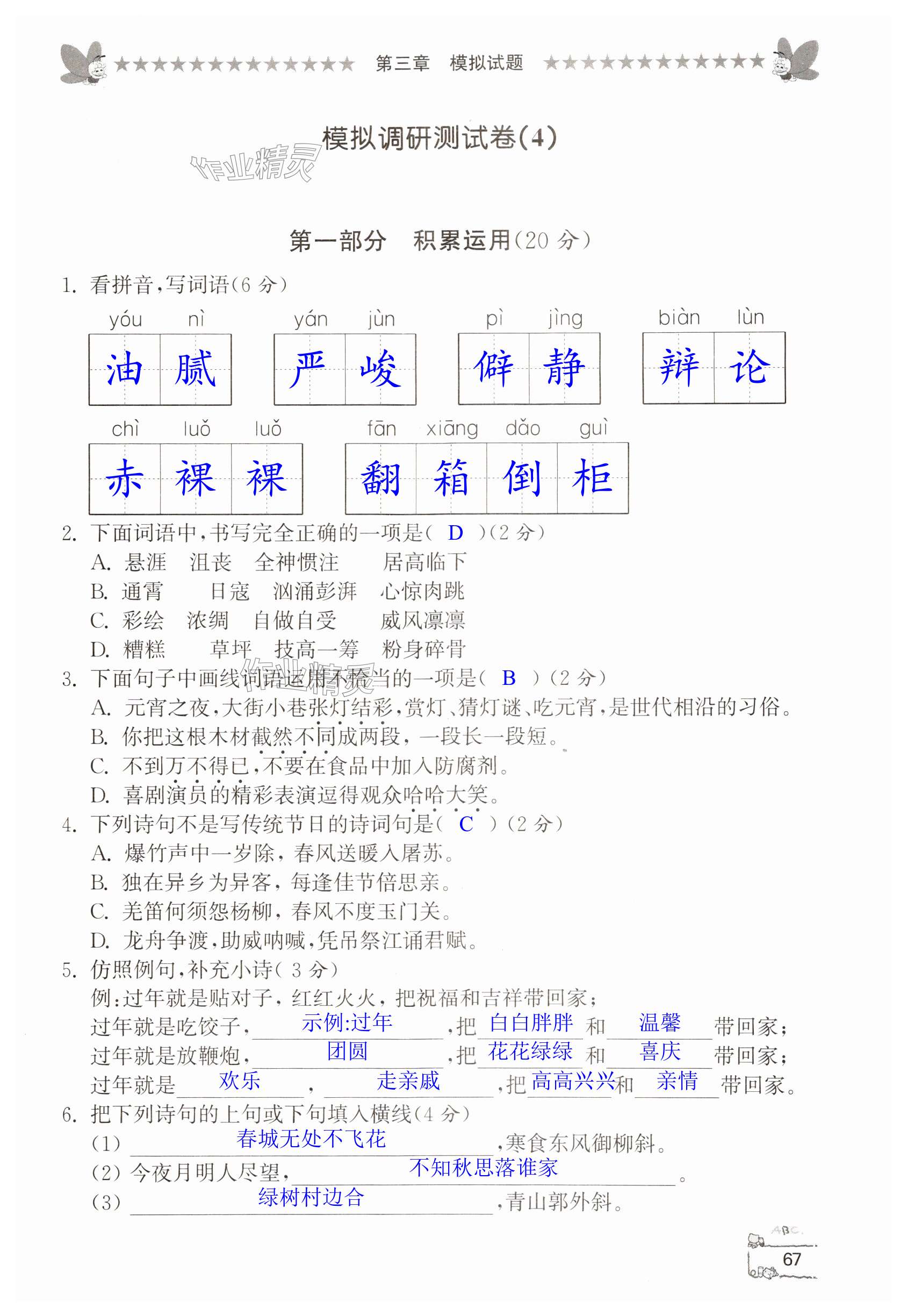 注:目前有些书本章节名称可能整理的还不是很完善,但都是按照顺序排列的,请同学们按照顺序仔细查找。练习册 2024年综合复习与测试语文 答案主要是用来给同学们做完题方便对答案用的,请勿直接抄袭。
