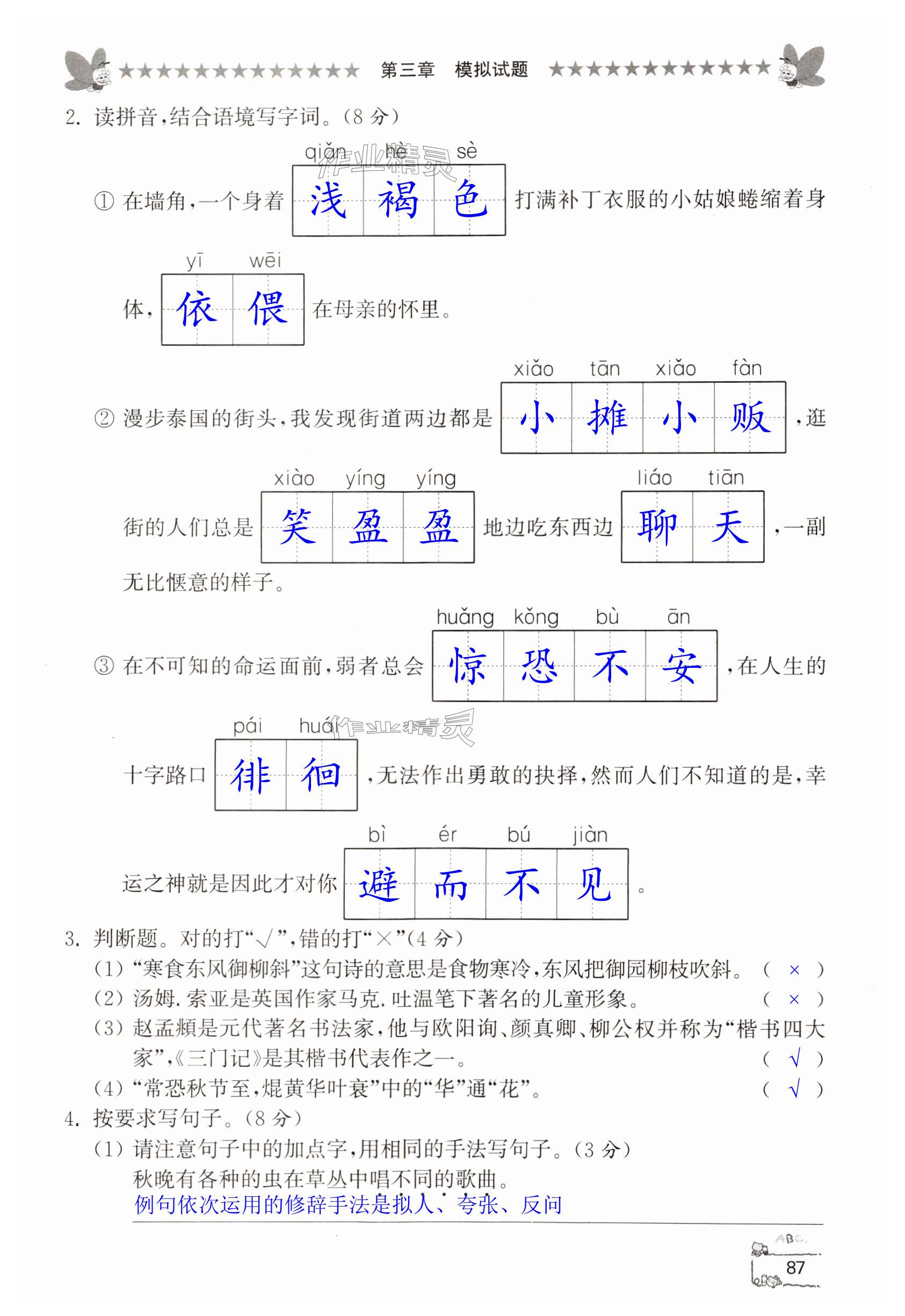 注:目前有些书本章节名称可能整理的还不是很完善,但都是按照顺序排列的,请同学们按照顺序仔细查找。练习册 2024年综合复习与测试语文 答案主要是用来给同学们做完题方便对答案用的,请勿直接抄袭。