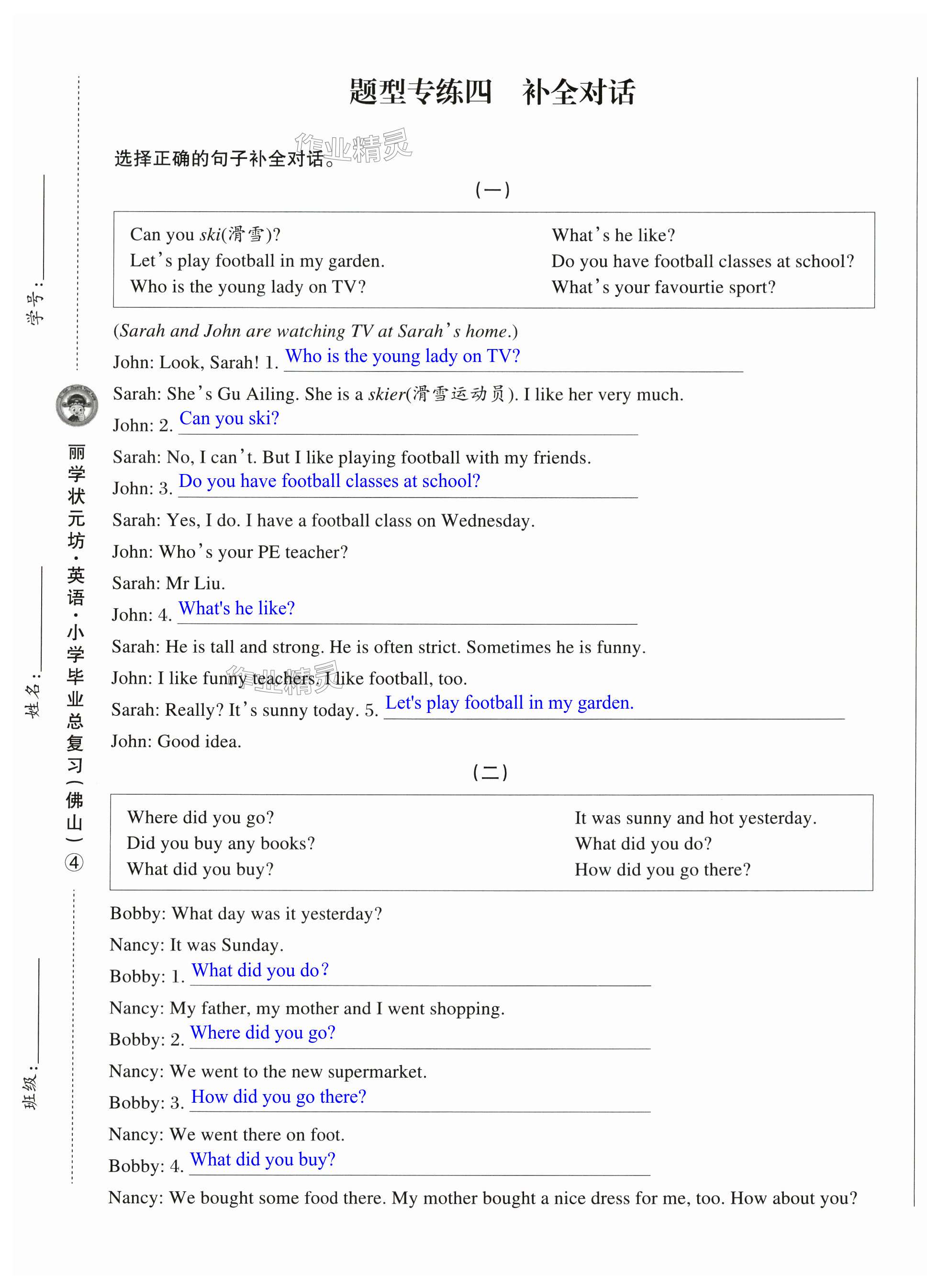 注:目前有些书本章节名称可能整理的还不是很完善,但都是按照顺序排列的,请同学们按照顺序仔细查找。练习册 2024年小学毕业总复习英语佛山专版 答案主要是用来给同学们做完题方便对答案用的,请勿直接抄袭。