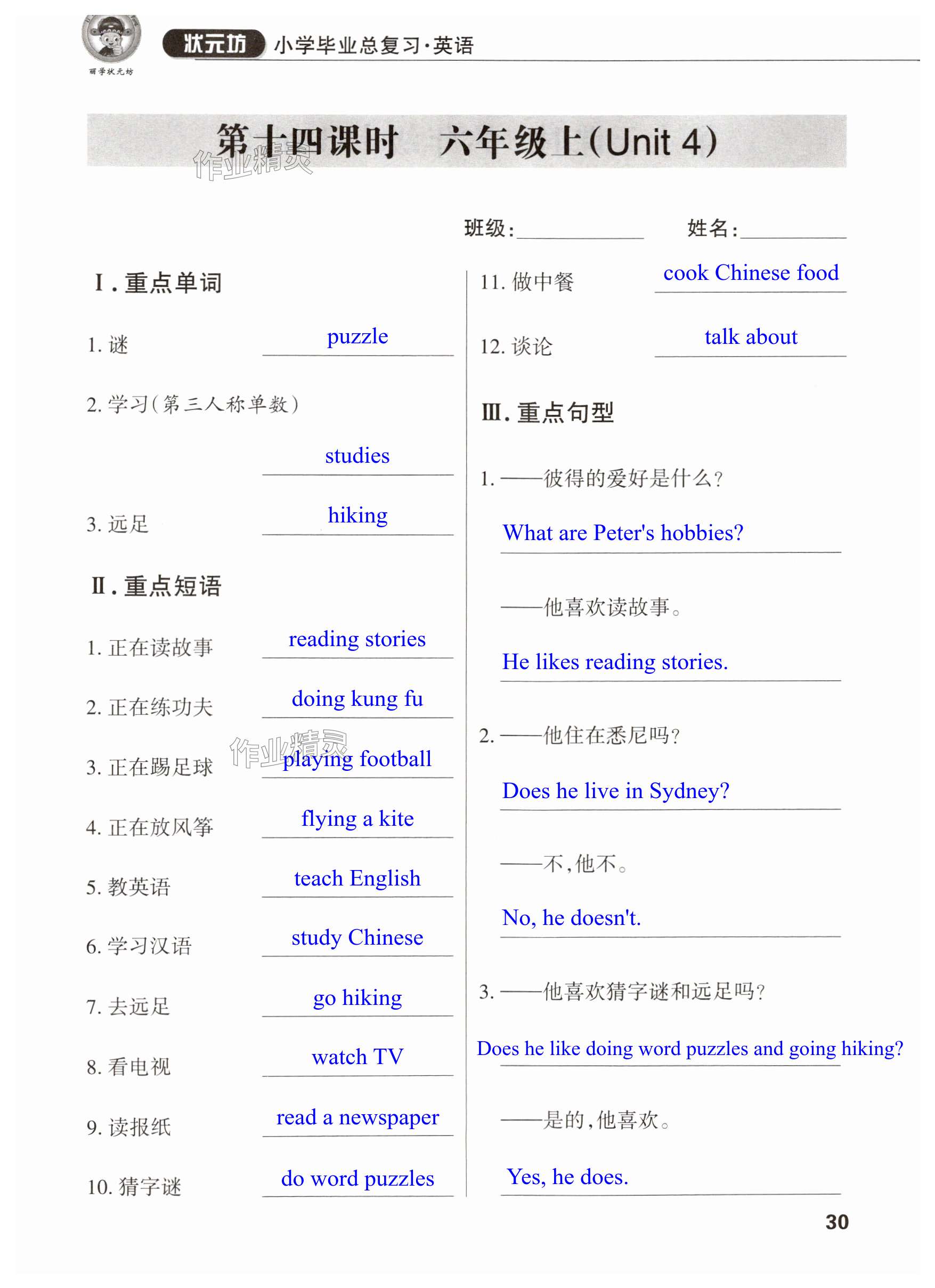 注:目前有些书本章节名称可能整理的还不是很完善,但都是按照顺序排列的,请同学们按照顺序仔细查找。练习册 2024年小学毕业总复习英语佛山专版 答案主要是用来给同学们做完题方便对答案用的,请勿直接抄袭。