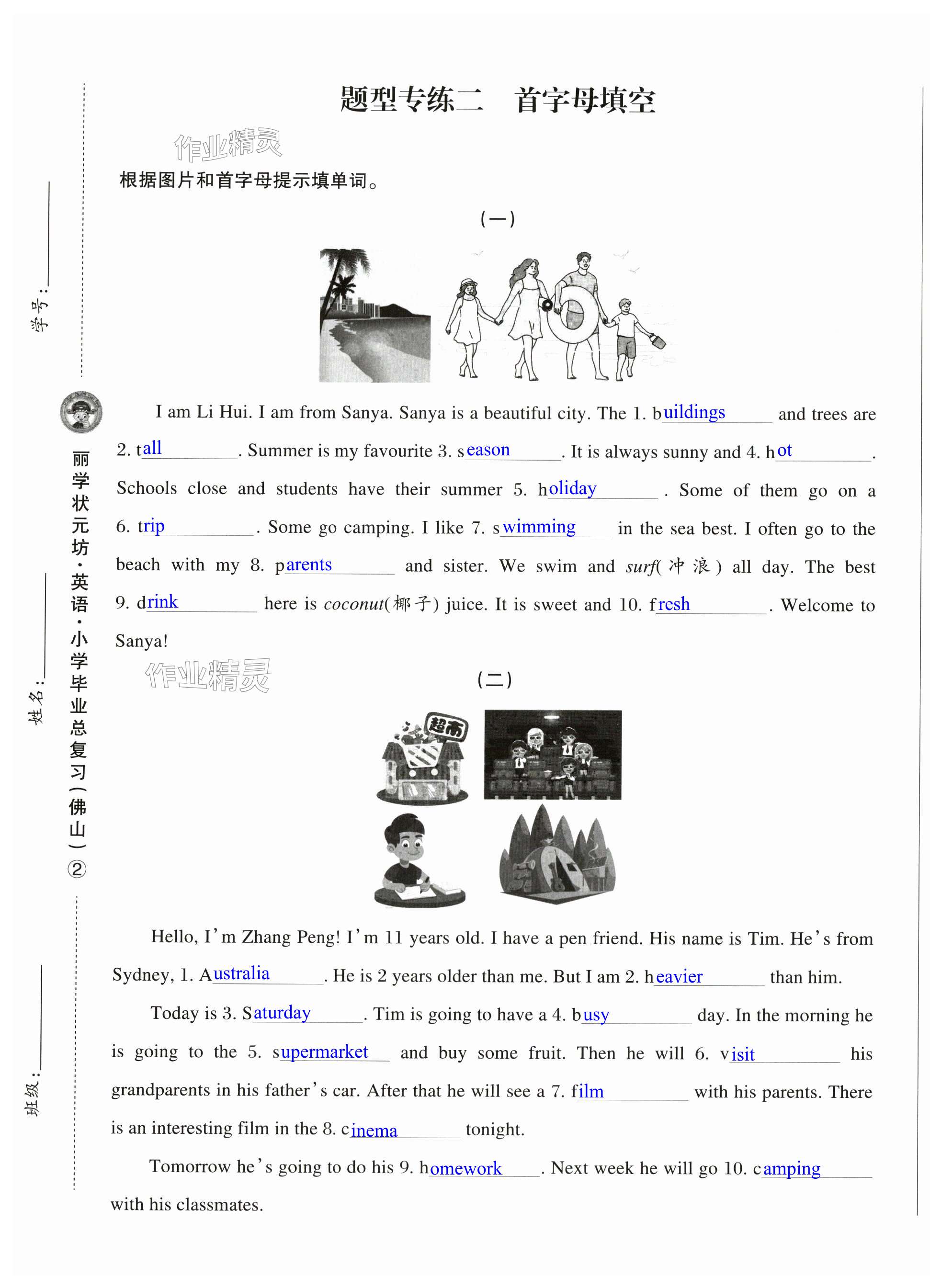 注:目前有些书本章节名称可能整理的还不是很完善,但都是按照顺序排列的,请同学们按照顺序仔细查找。练习册 2024年小学毕业总复习英语佛山专版 答案主要是用来给同学们做完题方便对答案用的,请勿直接抄袭。
