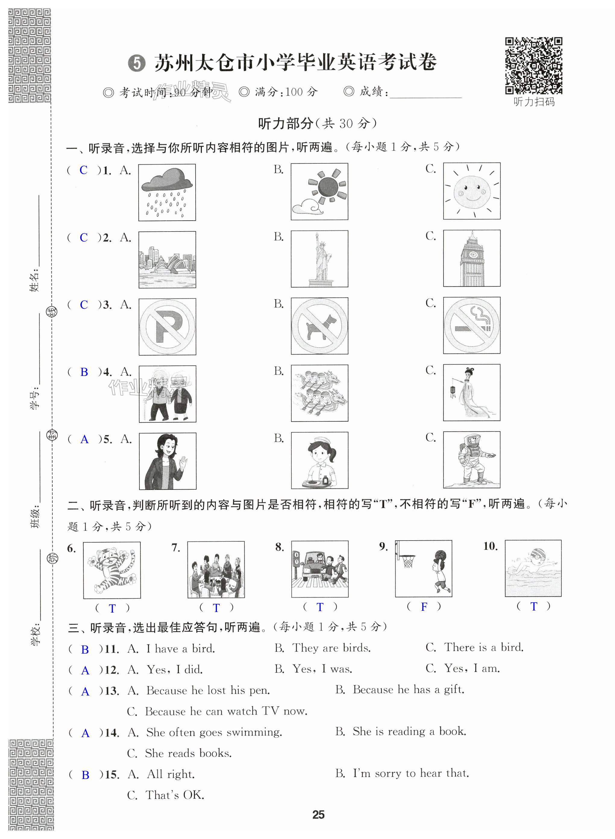 注:目前有些书本章节名称可能整理的还不是很完善,但都是按照顺序排列的,请同学们按照顺序仔细查找。练习册 2024年小学毕业甄选冲刺卷英语 答案主要是用来给同学们做完题方便对答案用的,请勿直接抄袭。