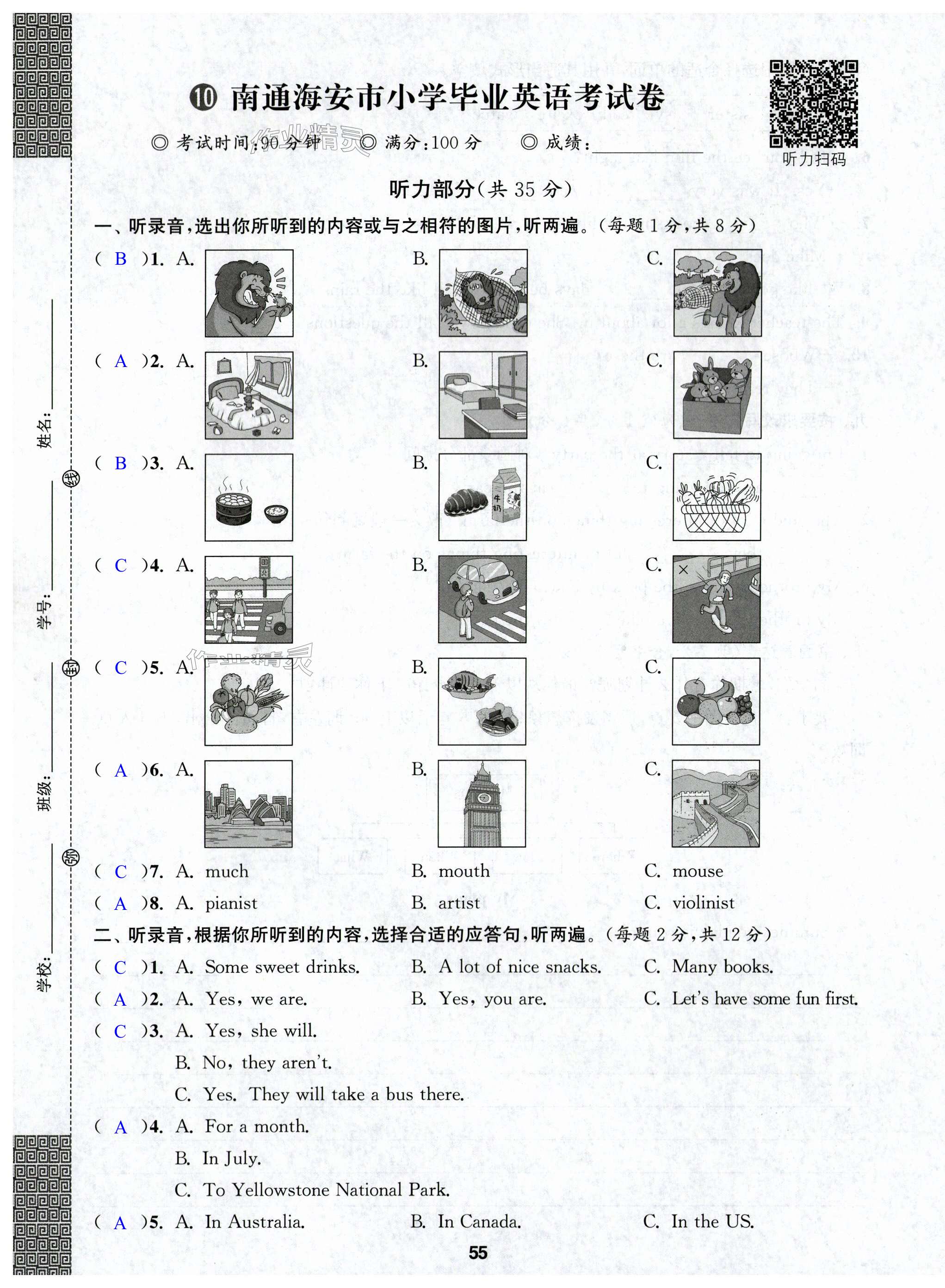 注:目前有些书本章节名称可能整理的还不是很完善,但都是按照顺序排列的,请同学们按照顺序仔细查找。练习册 2024年小学毕业甄选冲刺卷英语 答案主要是用来给同学们做完题方便对答案用的,请勿直接抄袭。