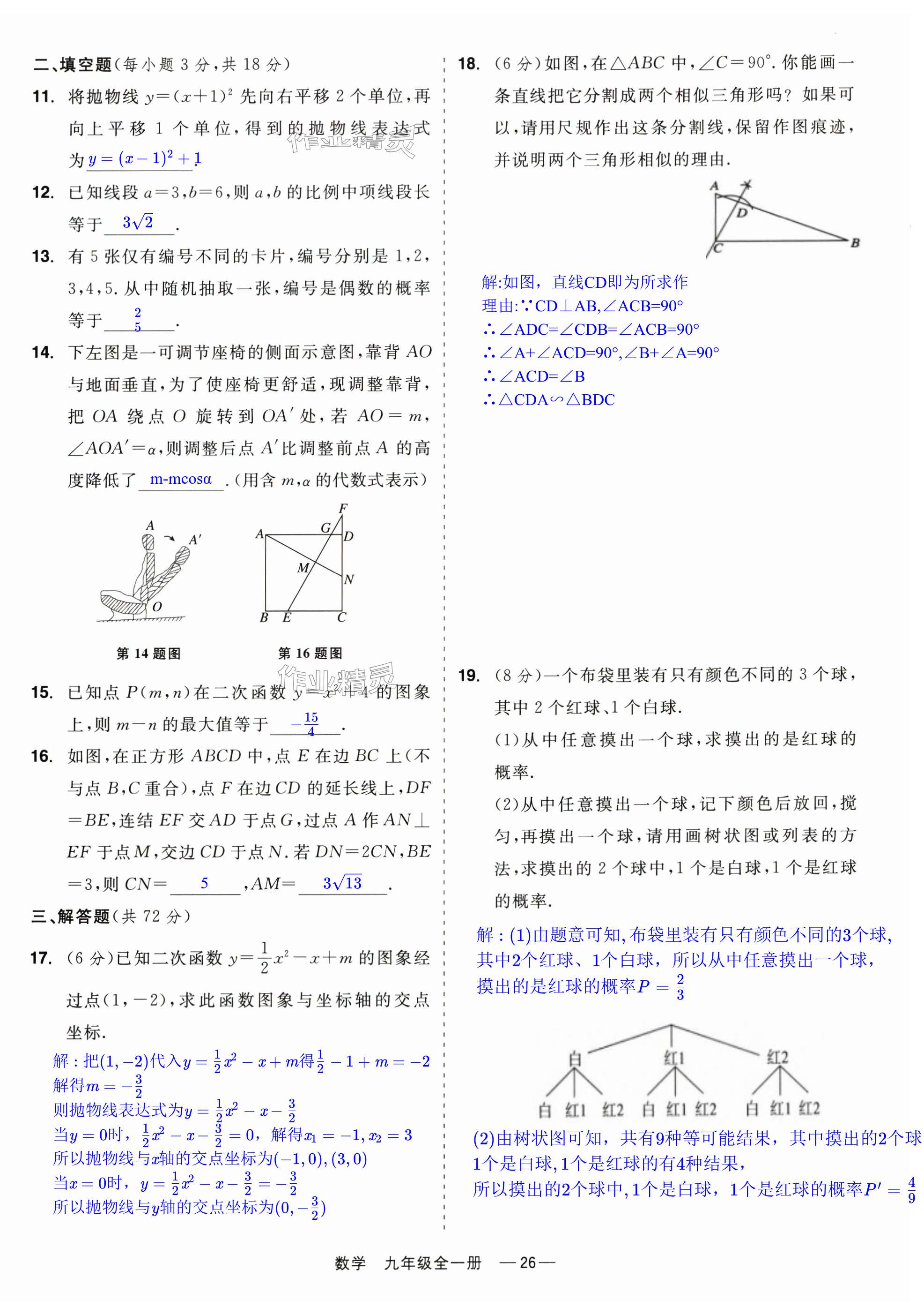 注:目前有些书本章节名称可能整理的还不是很完善,但都是按照顺序排列的,请同学们按照顺序仔细查找。练习册 2024年精彩三年就练这一本九年级数学全一册浙教版 答案主要是用来给同学们做完题方便对答案用的,请勿直接抄袭。