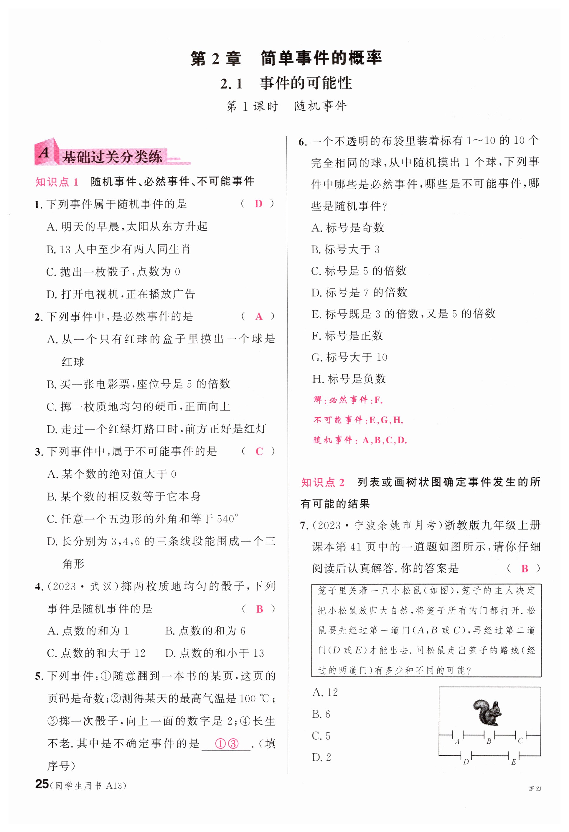 2024年名校课堂九年级数学全一册浙教版浙江专版
