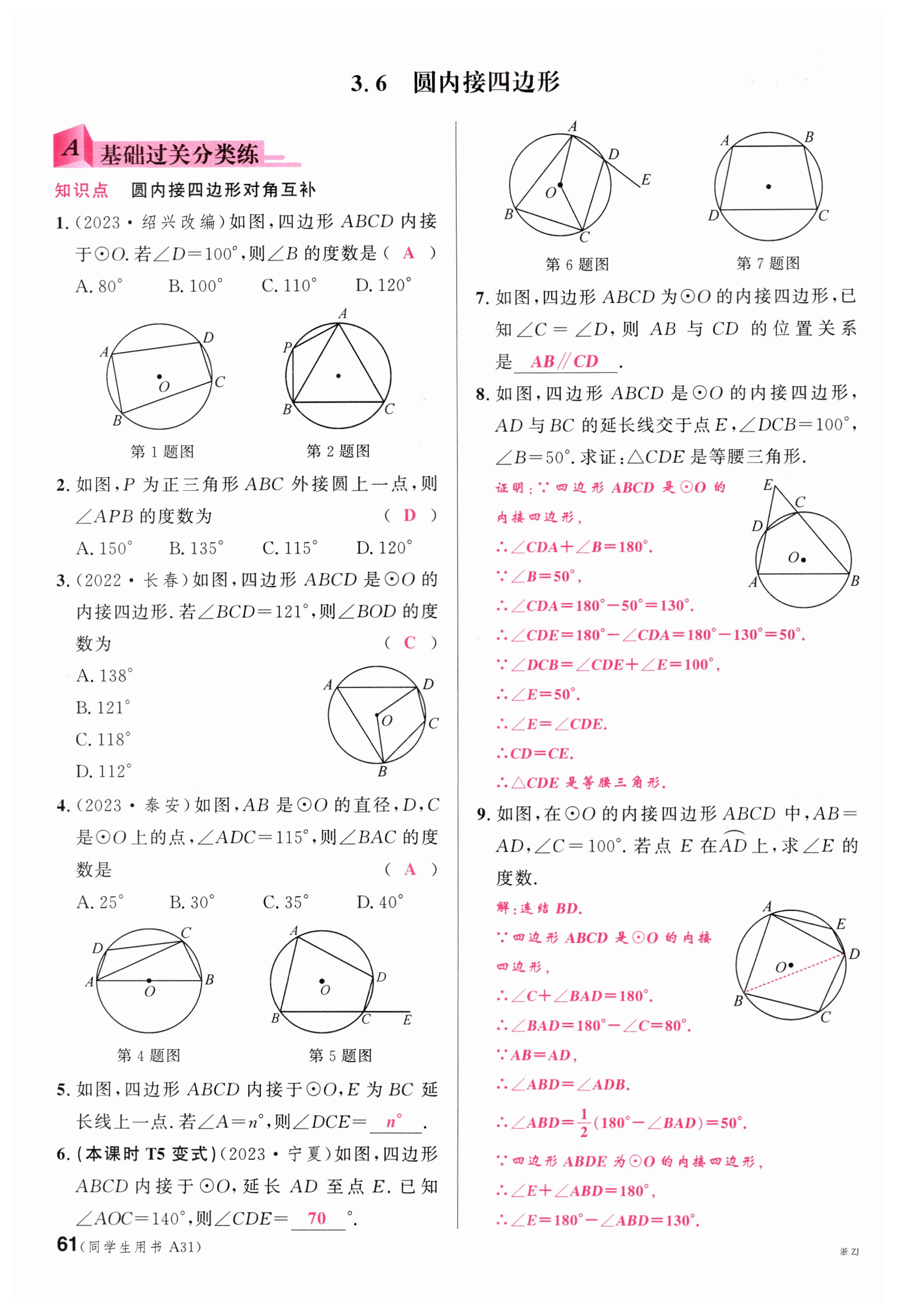 2024年名校课堂九年级数学全一册浙教版浙江专版