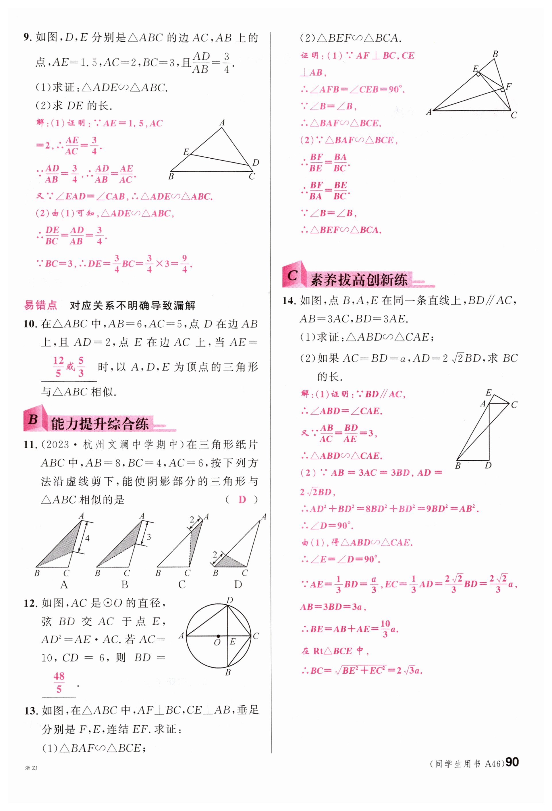 注:目前有些书本章节名称可能整理的还不是很完善,但都是按照顺序排列的,请同学们按照顺序仔细查找。练习册 2024年名校课堂九年级数学全一册浙教版浙江专版 答案主要是用来给同学们做完题方便对答案用的,请勿直接抄袭。